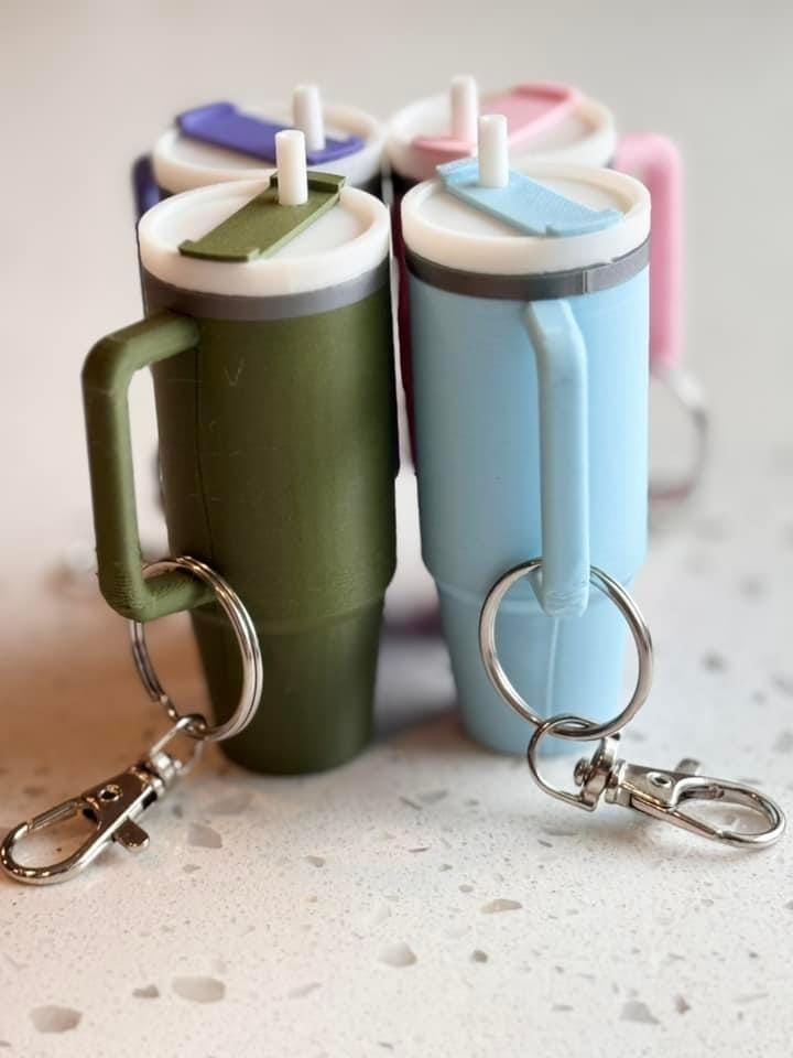 Mini Stanley Inspired Tumbler Chapstick Holder Keychain 3mf File for 3D Printing,Mini Tumbler Chapst...