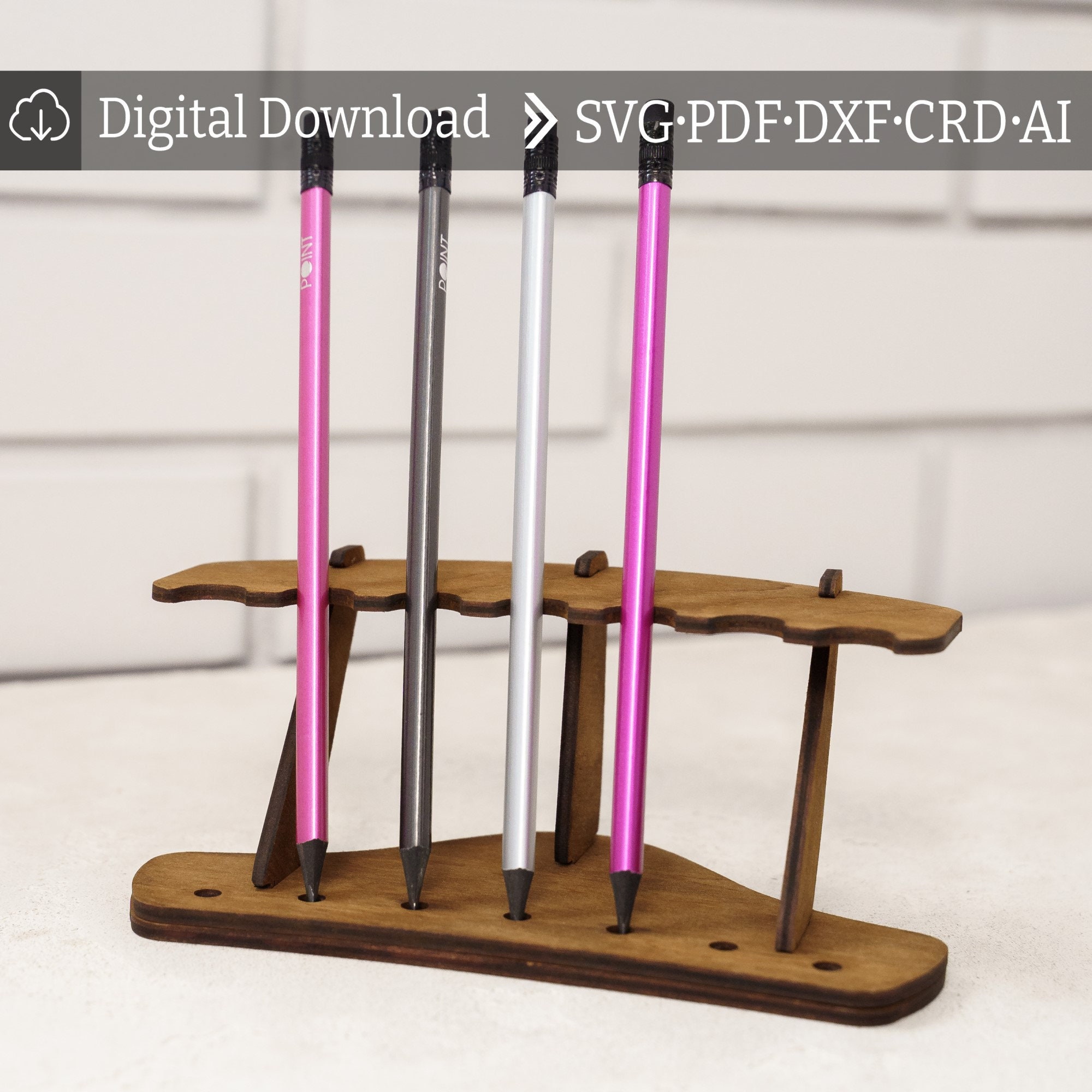 Pen holder laser cut, Wooden pen holder laser cut, Pen holder svg, ...