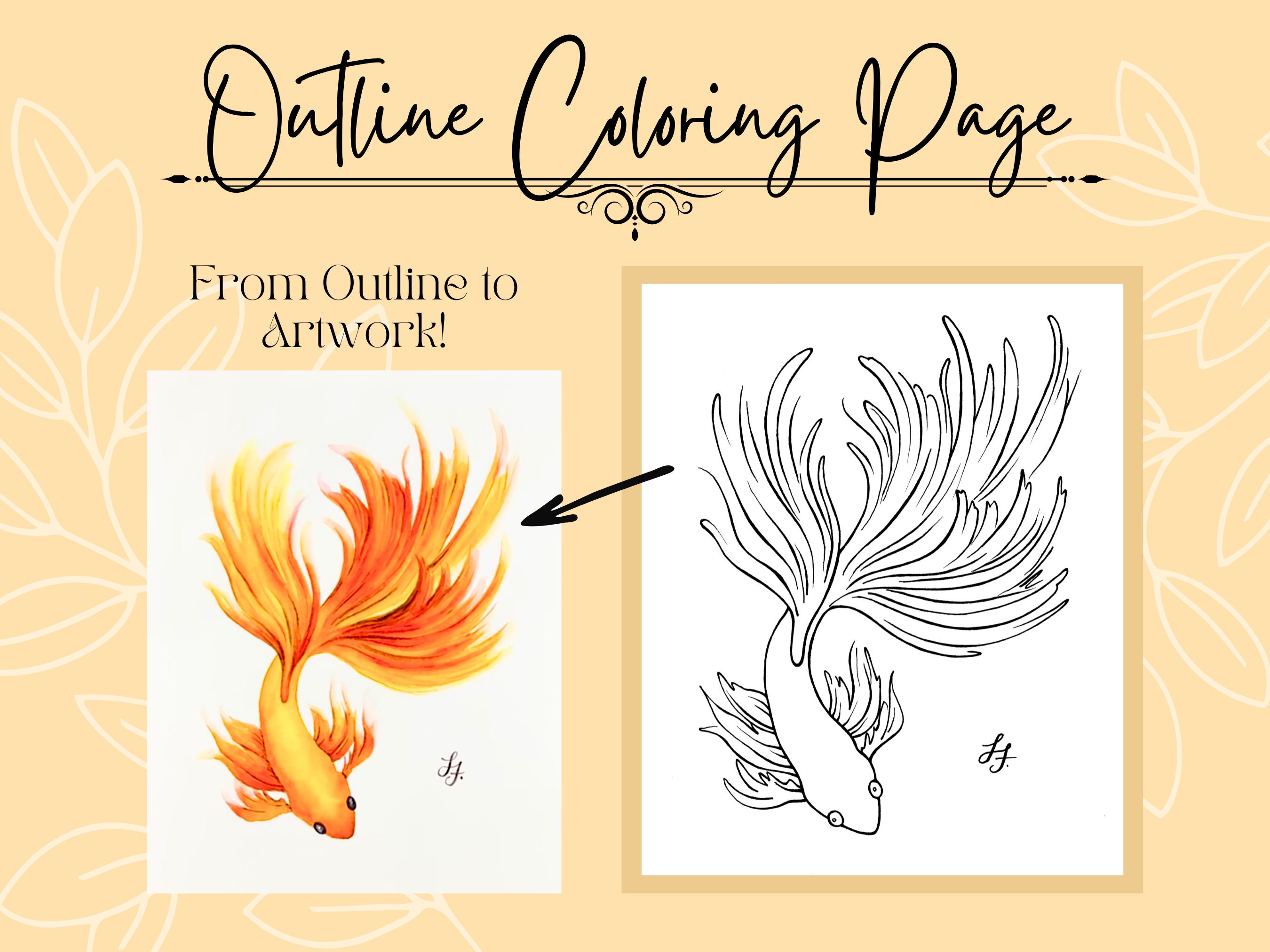 Goldfish/Fish Drawing Outline 8x10 PDF Printable Coloring Page for ...