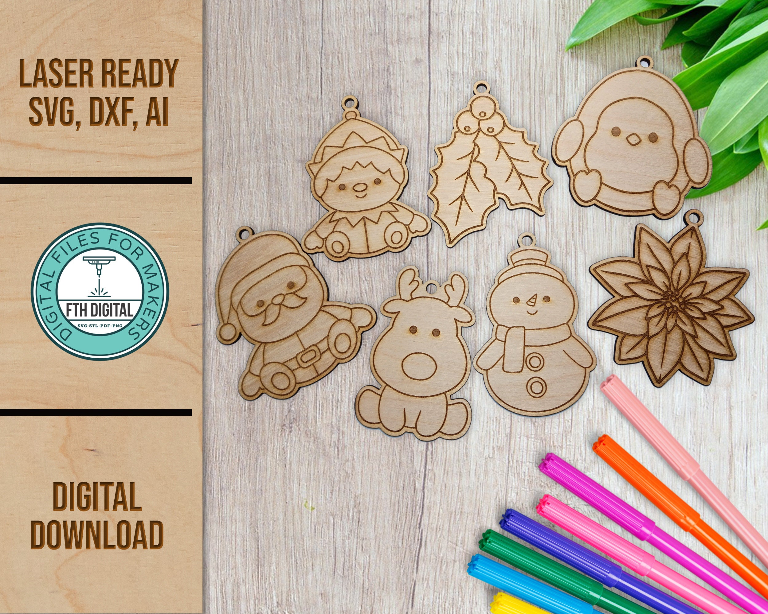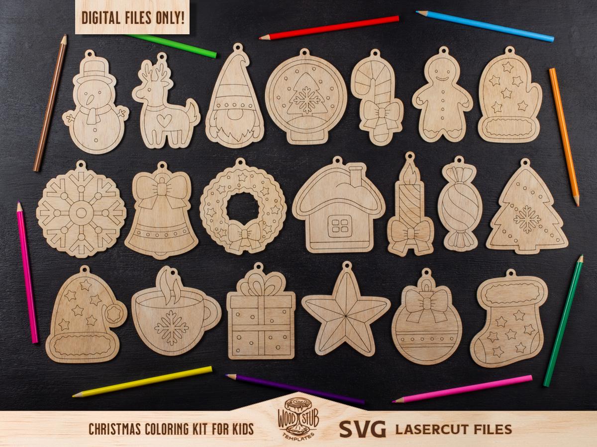 Christmas Coloring Kit for Kids, Laser SVG, Christmas Ornaments SVG...