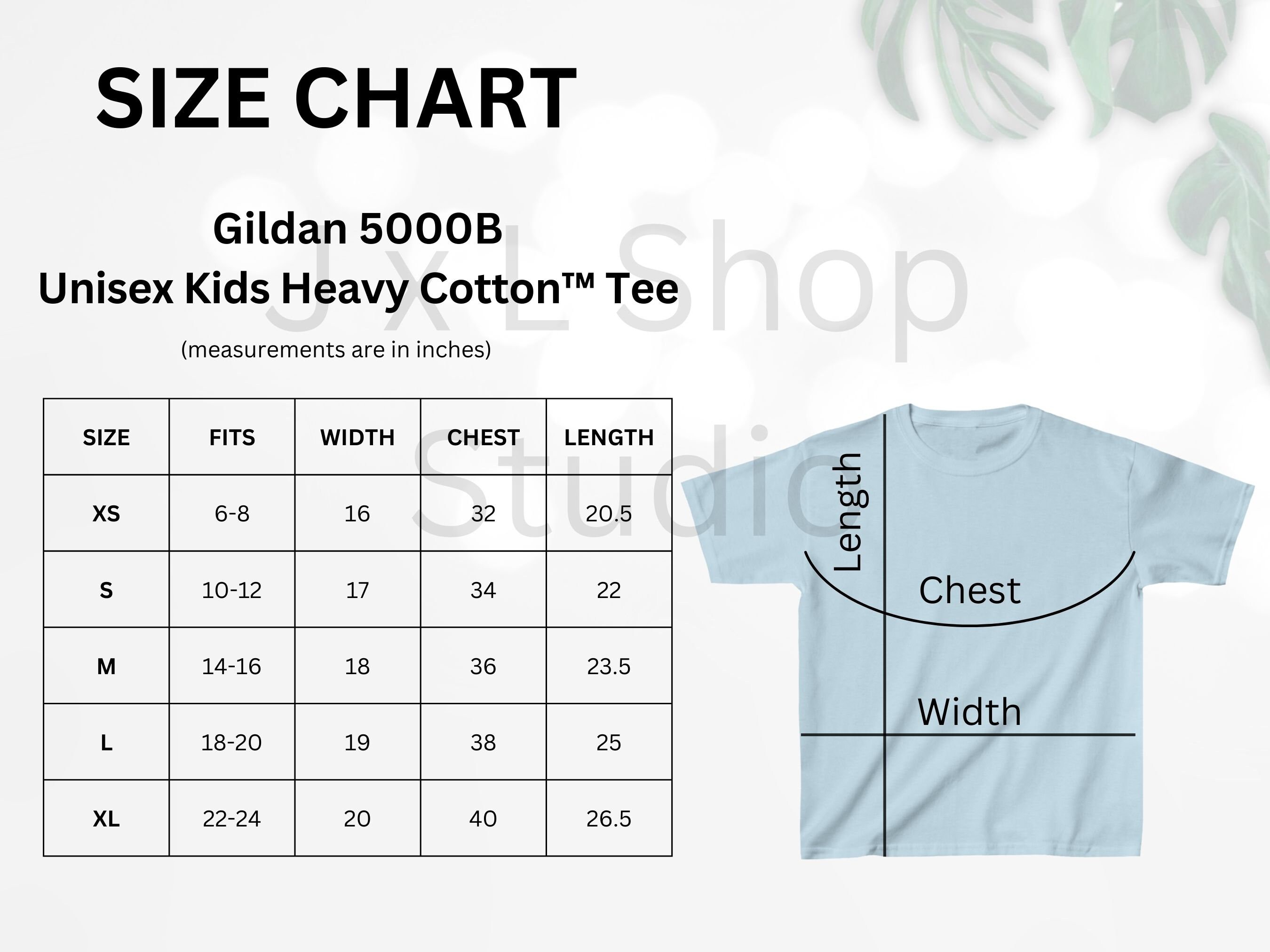 Set of 2, Gildan 5000B Unisex Kids Size Chart, 5000B Size Chart, Si...