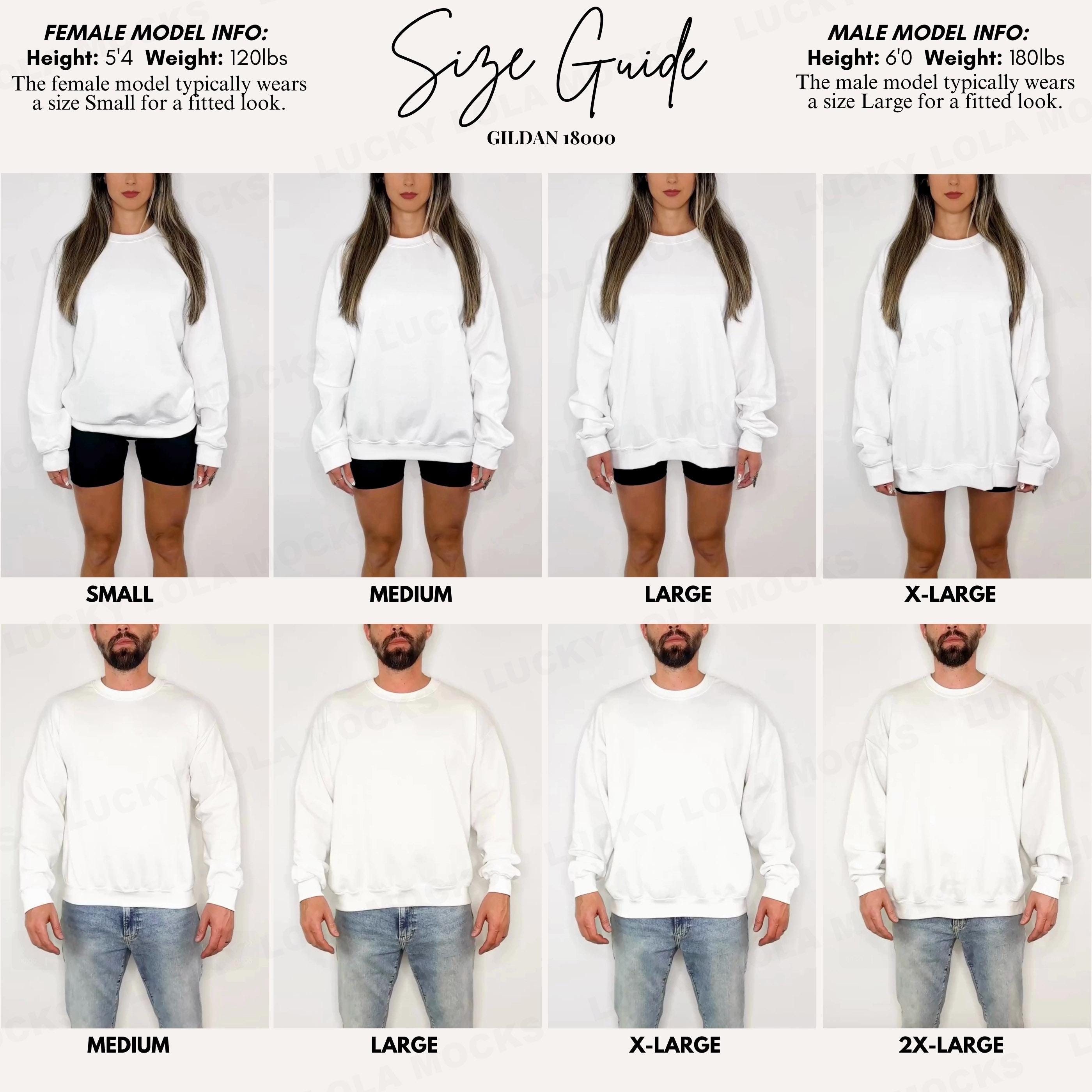 "Gildan 18000 Size Chart CREATE YOUR OWN BUNDLE! 10% OFF 3+ mockups with code: LOLA10 15% OFF 5...