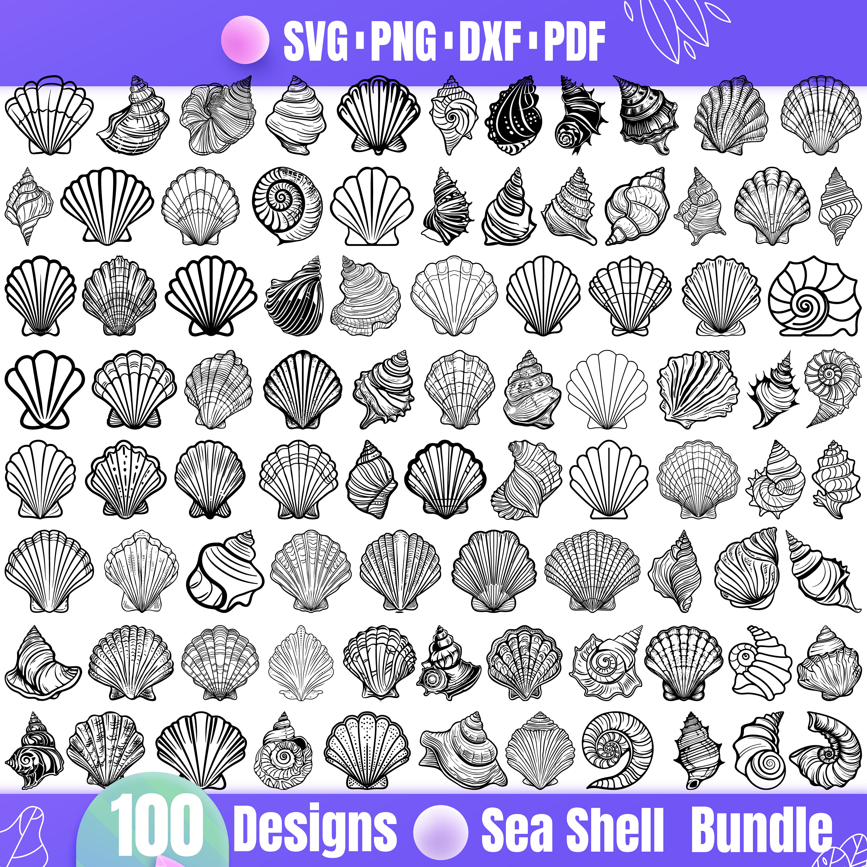 High Quality Sea Shell SVG Bundle, Sea Shell dxf, Sea Shell png, Se...