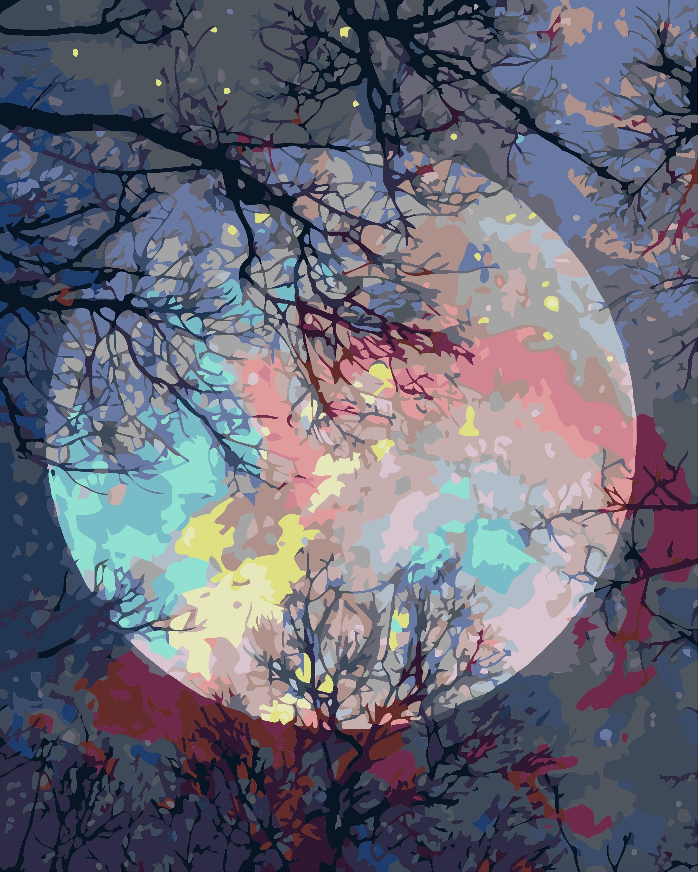Colorful Moon Paint by Numbers, DIY Painting Kit on Canvas with Bru...