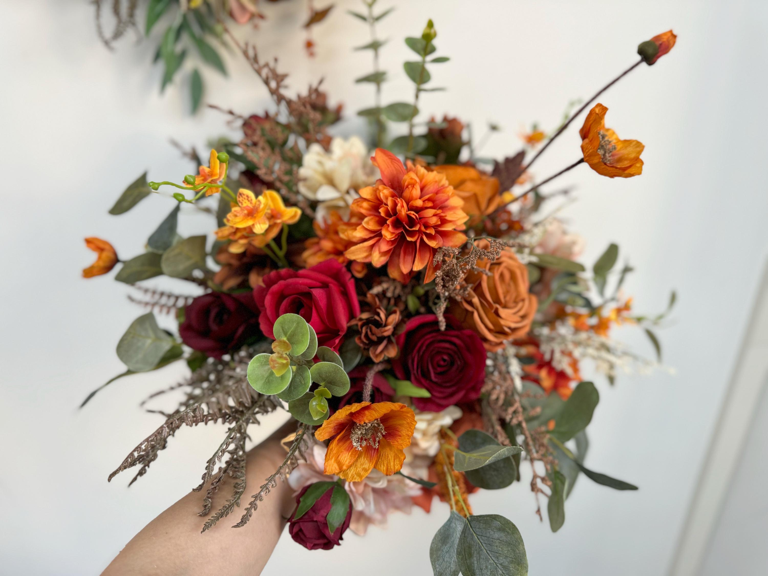 Burnt orange & burgundy bouquet, Burnt orange wedding bouquet, ...