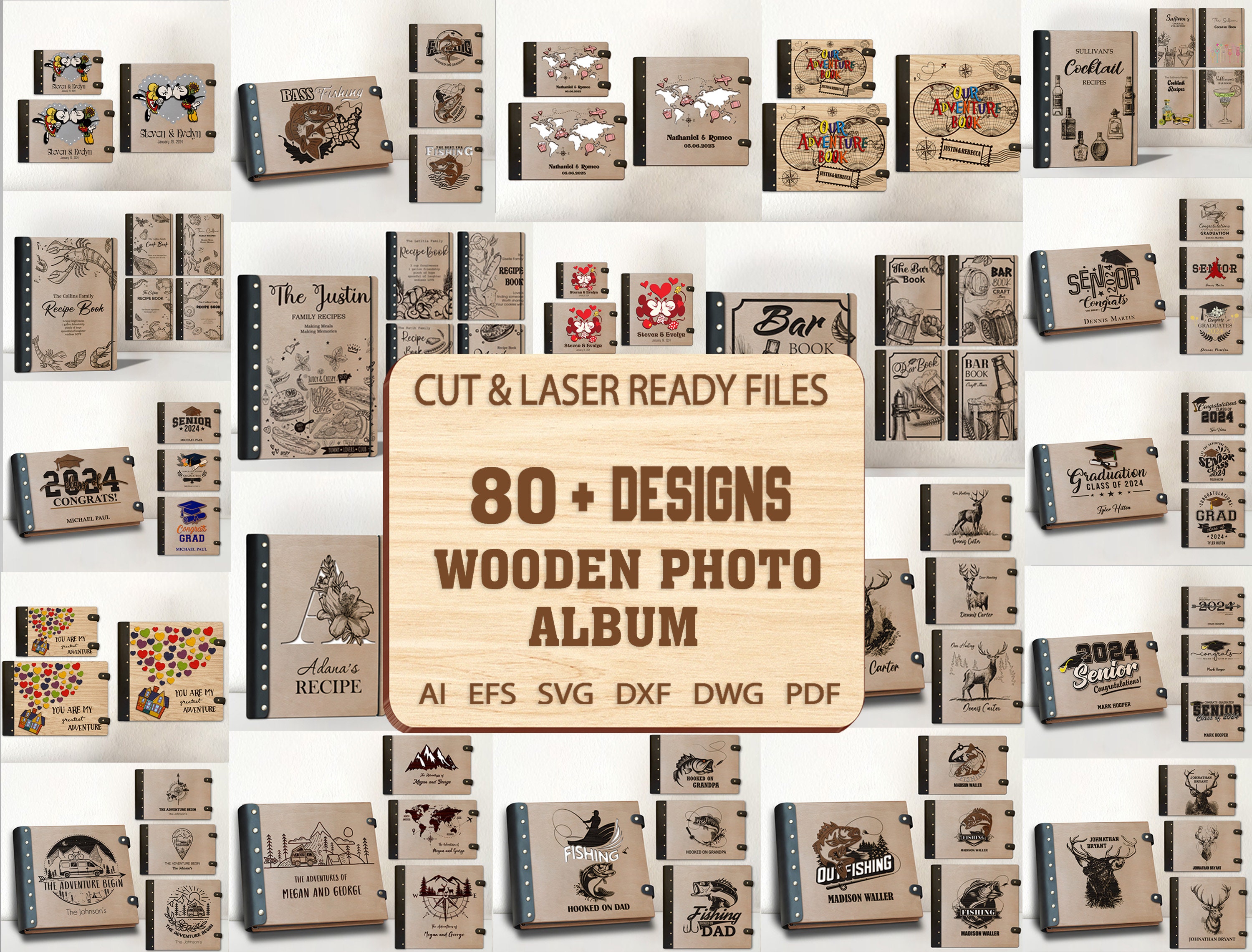 Bundle 80+ Designs Wooden Photo Album Book Binder Svg,Wooden Cookbo...