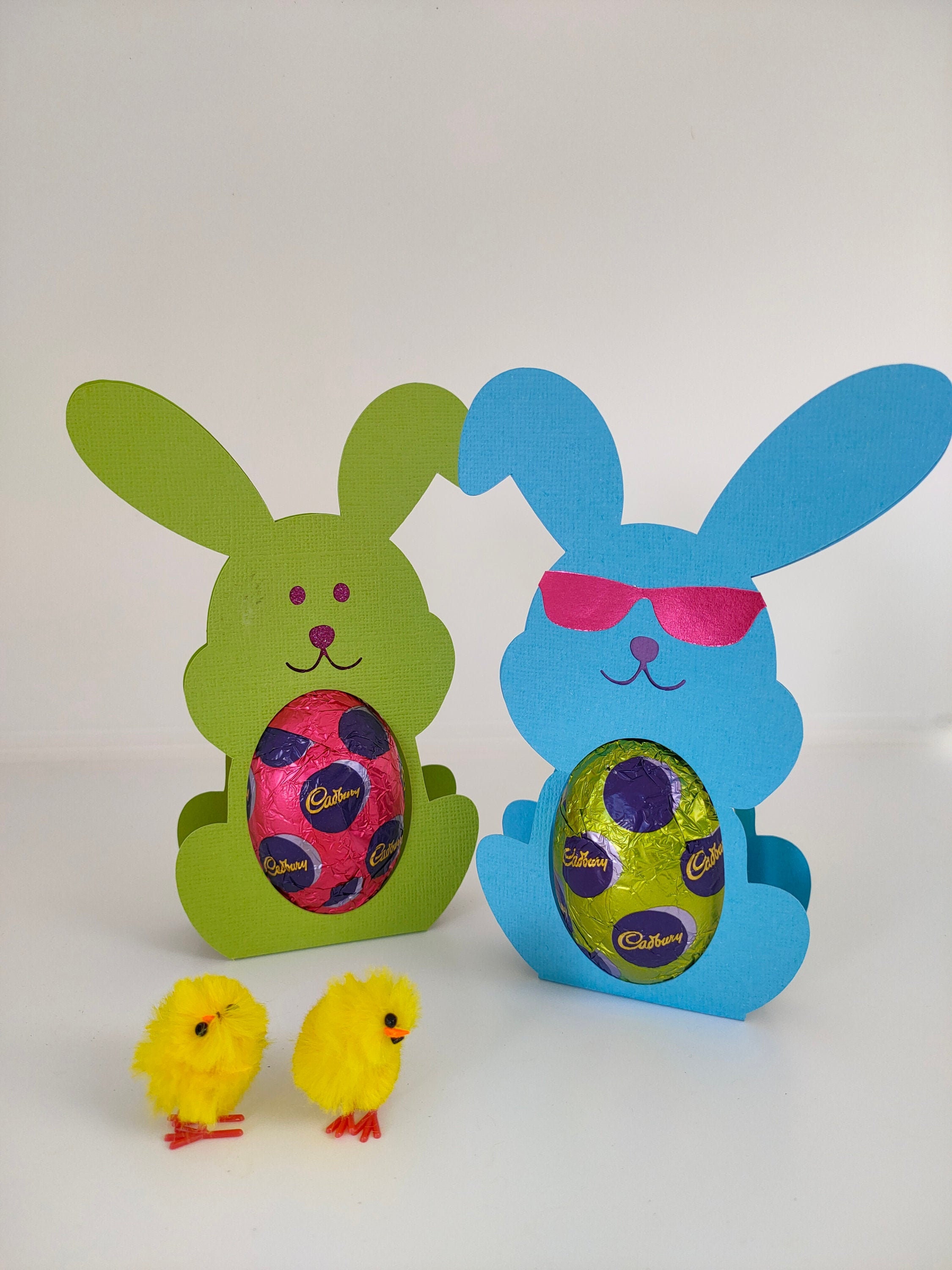 Easter bunny chocolate holder with glasses! The bunny sits on a 2cm base and fits the Cadbury 6cm Ea...