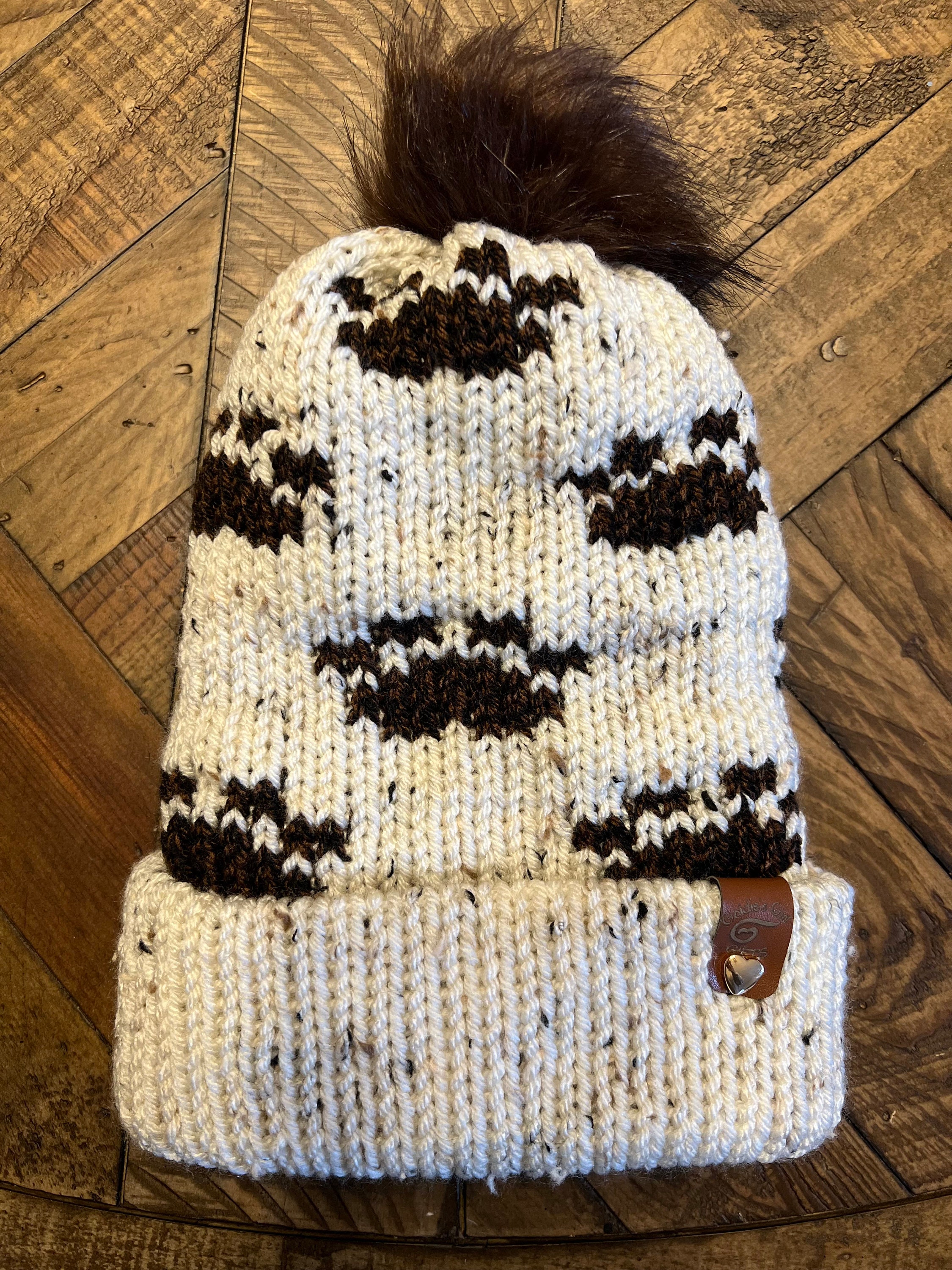 Playful Dog Paw Print Knit Hat Pattern for Circular Knitting Machin...