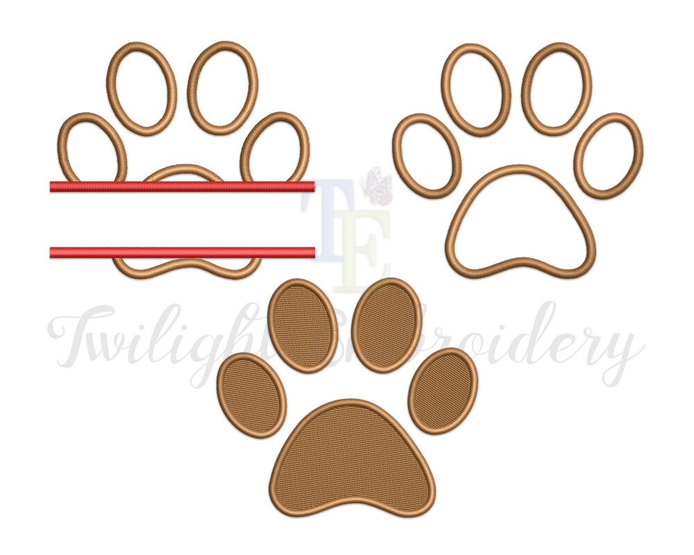 Set of 3 Paw Print Machine Embroidery Designs Paw Print Fill Stitch...