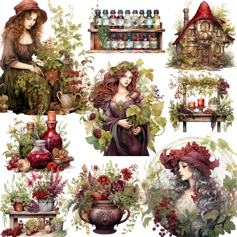 Forest Herbal Witch Stickers Crafts And Scrapbooking stickers kids toys book Decorative sticker DIY ...