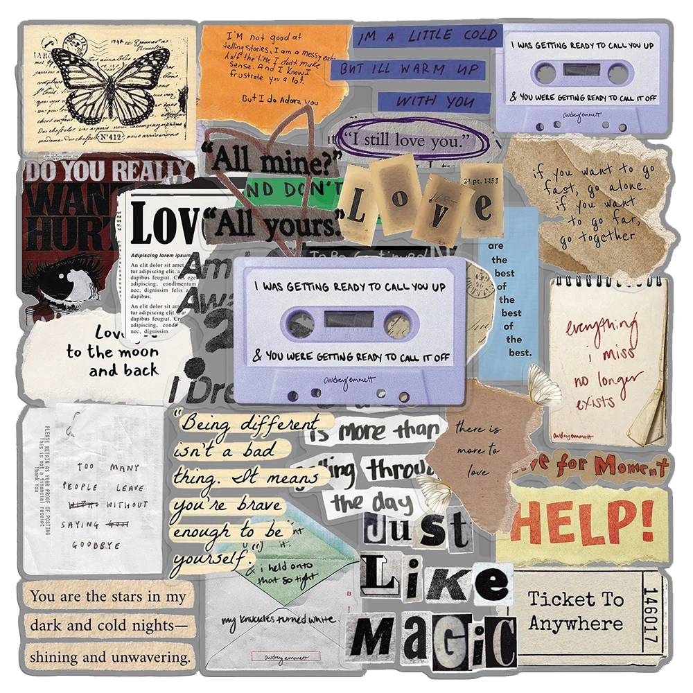 10/30/50pcs Transparent Fragmented Text Retro Handmade Stickers Creative Graffiti Decals DIY Scrapbo...