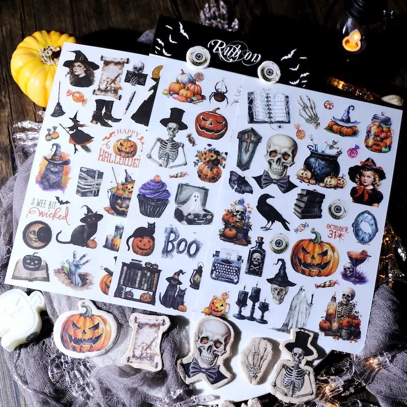 Vintage Halloween Rub On Stickers For Scrapbooking Junk Journal Deco Craft Diary Planner Hobby DIY T...