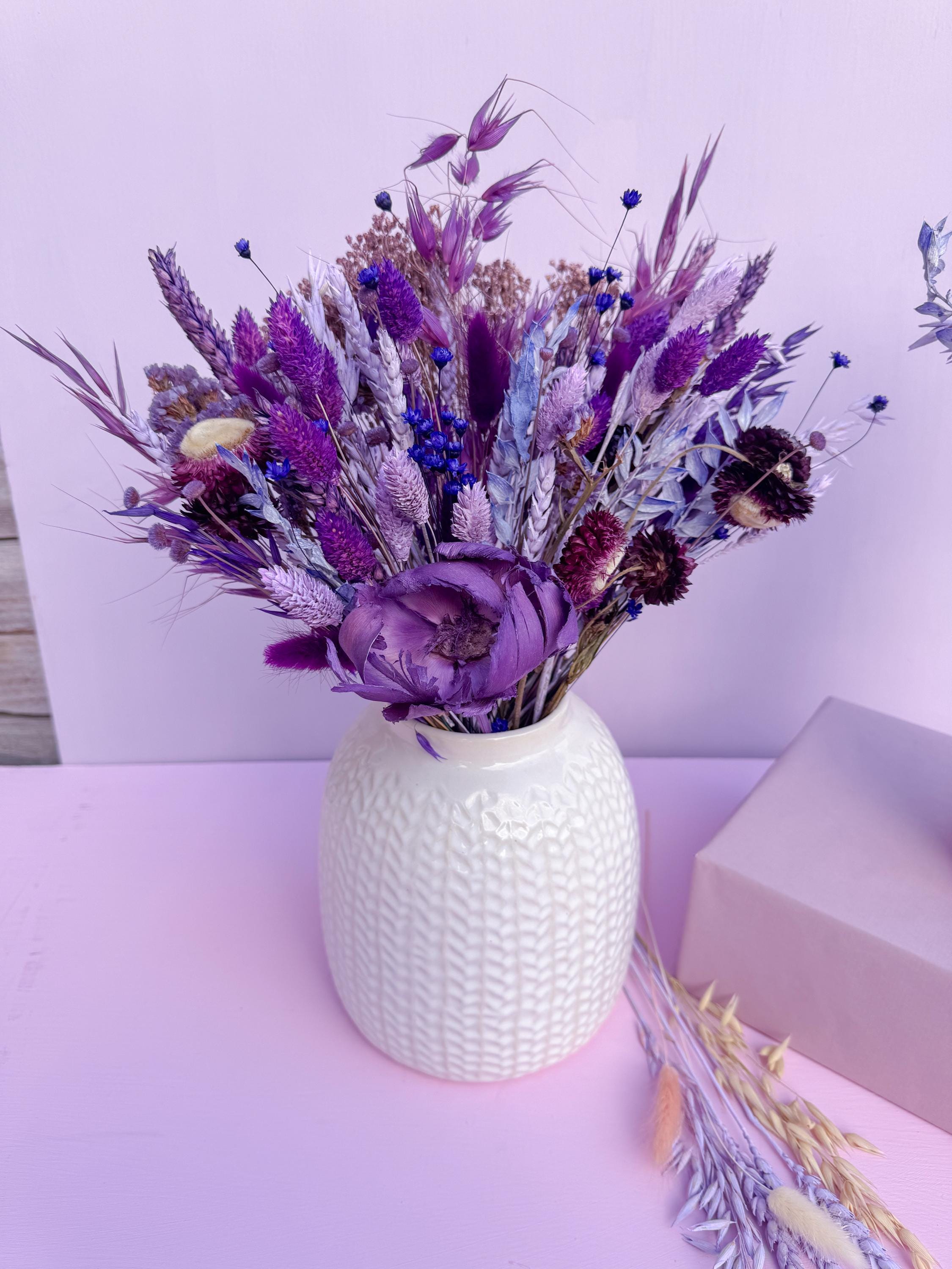 This deep purple and lilac dried flower arrangement is such an elegant bunch to create a striking di...