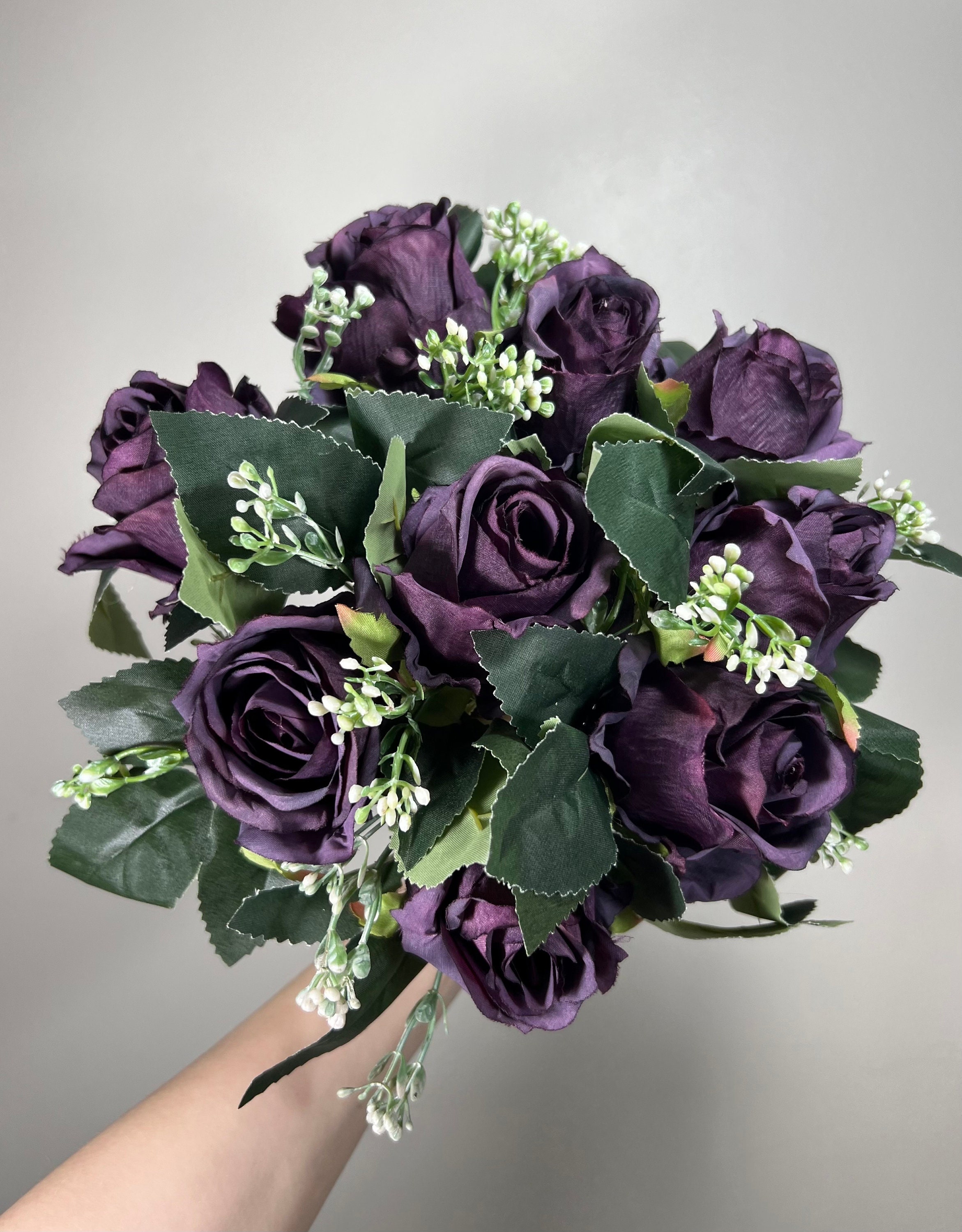 Dark Purple Flower Head Rose Plum Dark Purple Wedding Fake Roses Pu...