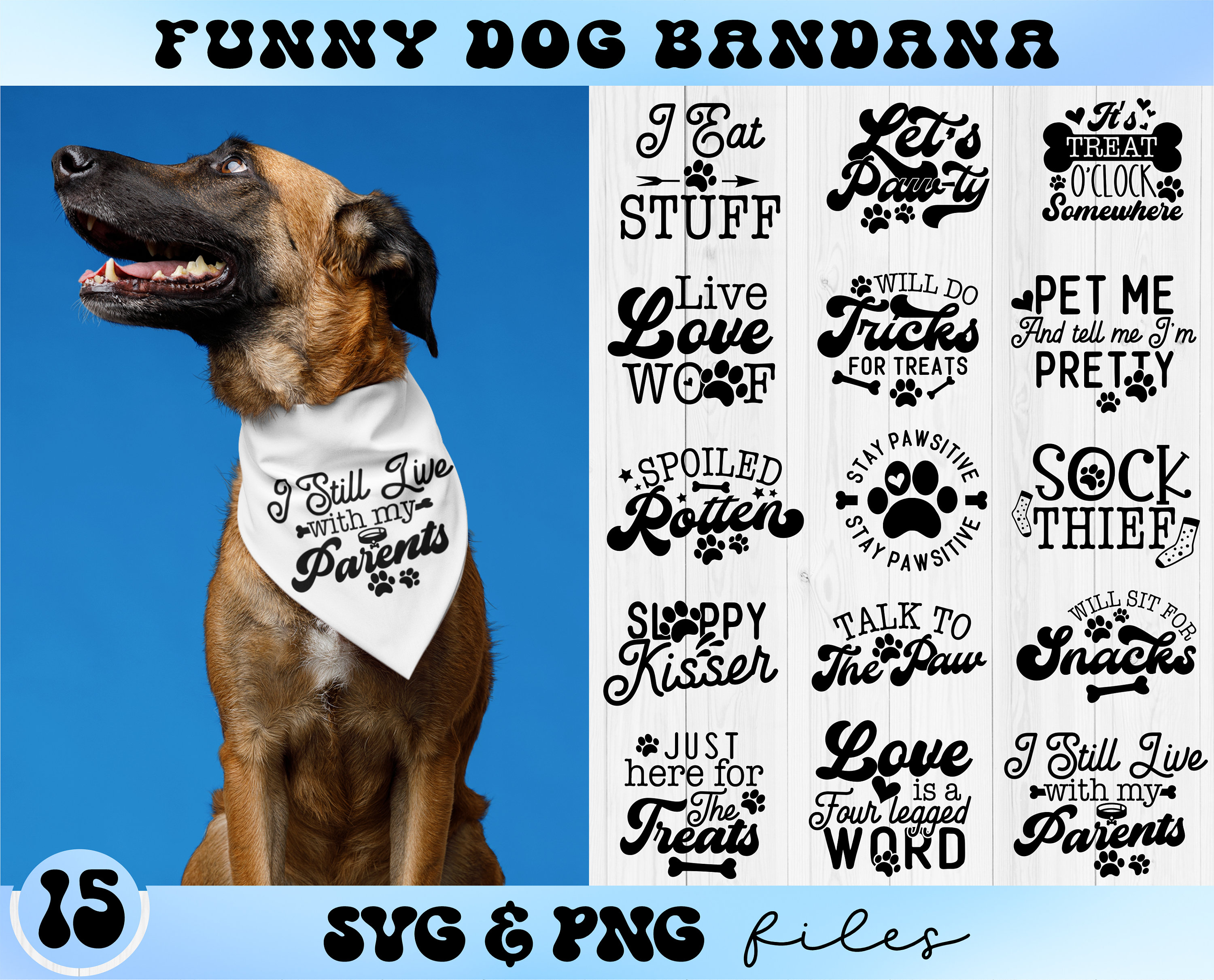"Funny Dog Bandana Bundle - are high-quality SVG and PNG files! These designs are perfect for a...