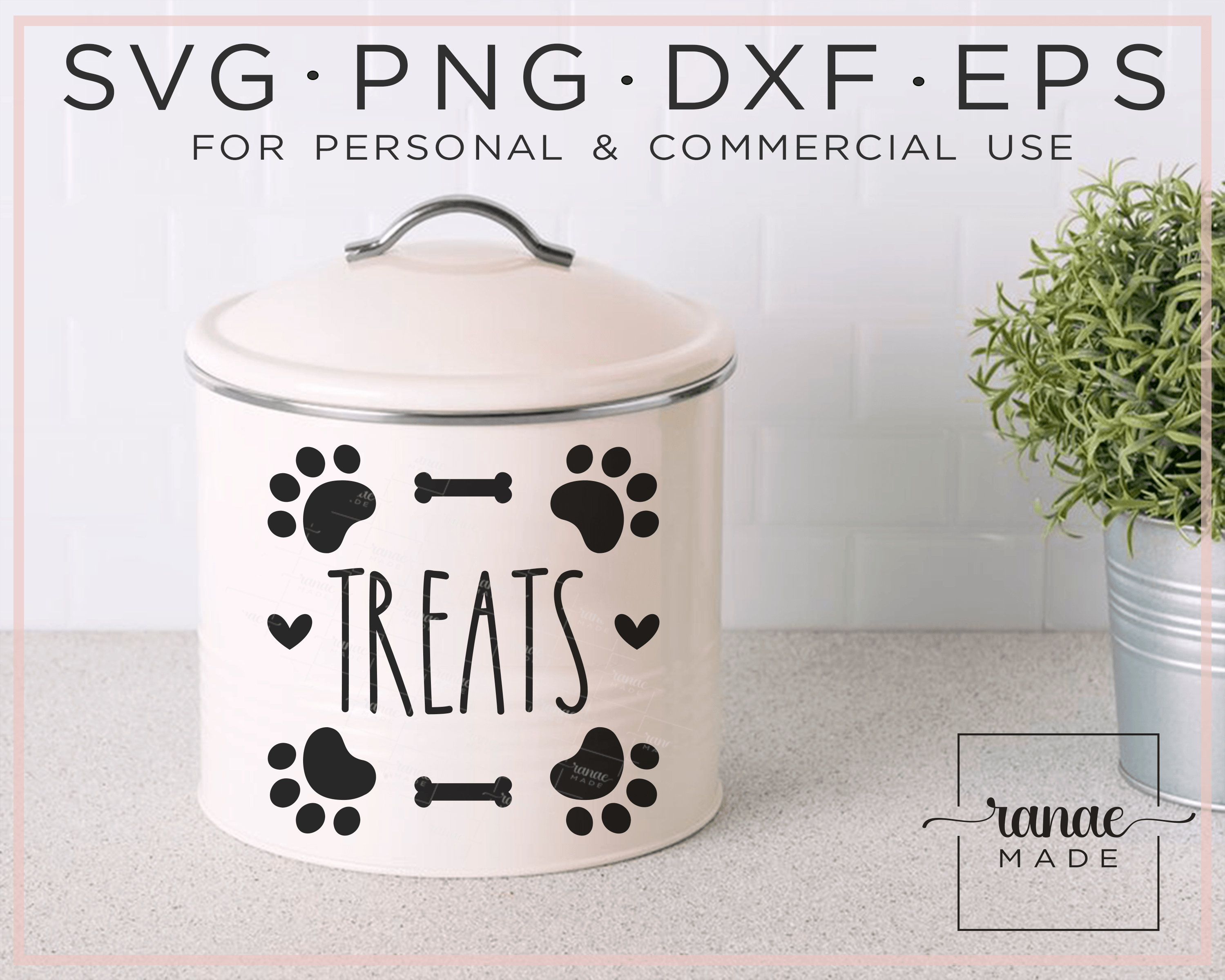 "Dog treats SVG cut file. Great for dog training or vet office treat jar decals! \"TREATS\...