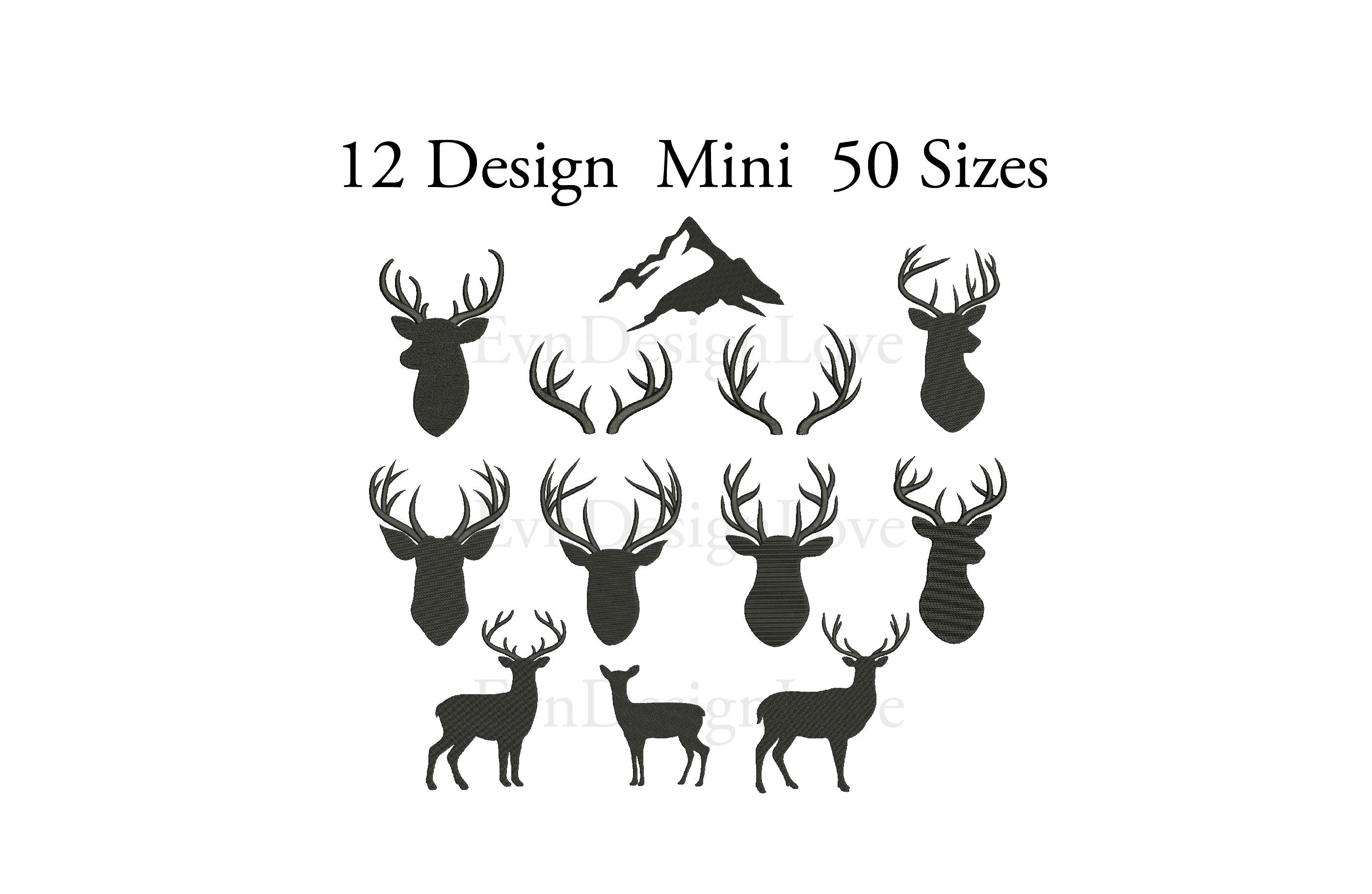 Set Mini Deer Embroidery, Set Deer Head Embroidery, Mini Deer Silho...