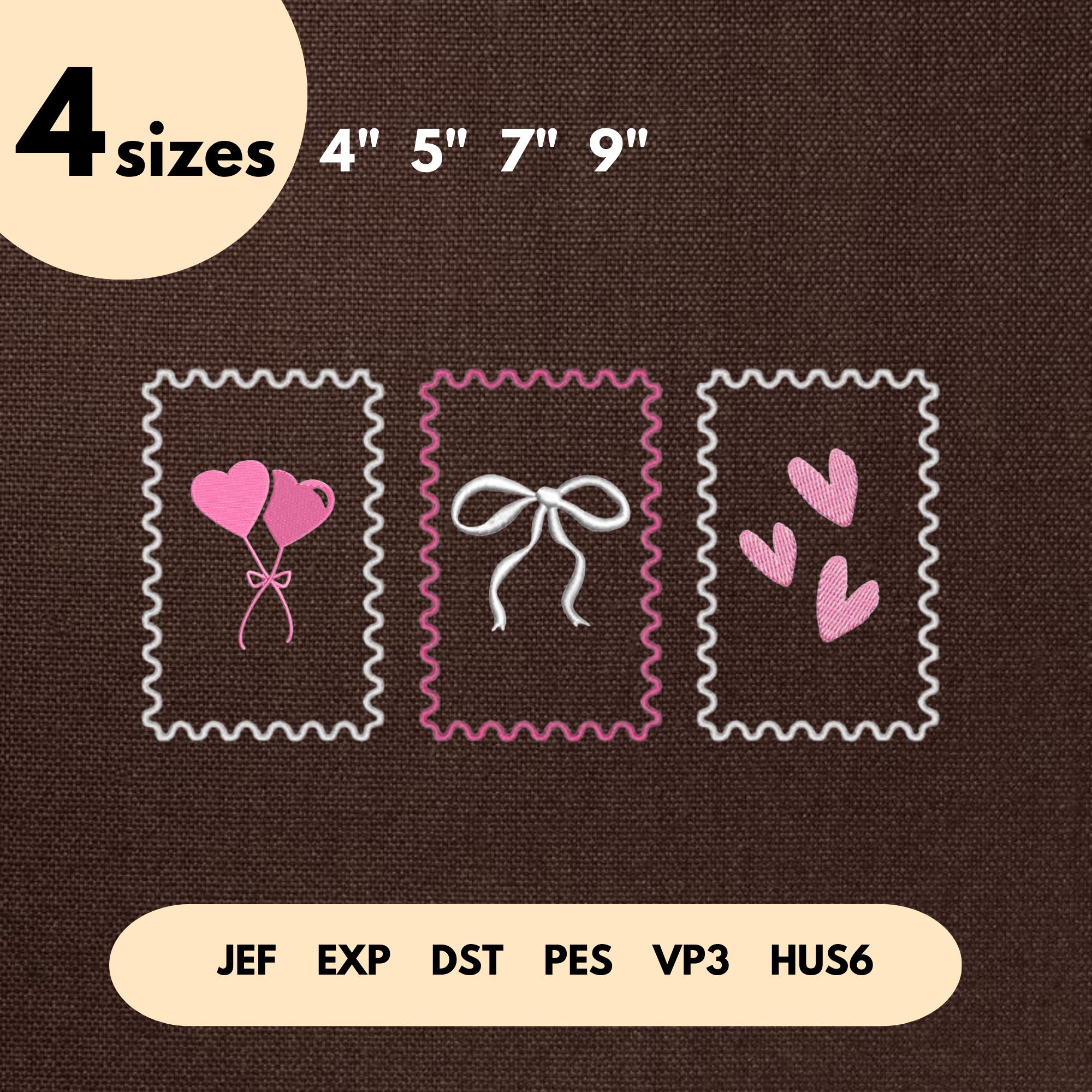 Valentines Day Stamps Embroidery Design, Coquette Valentines Embroi...