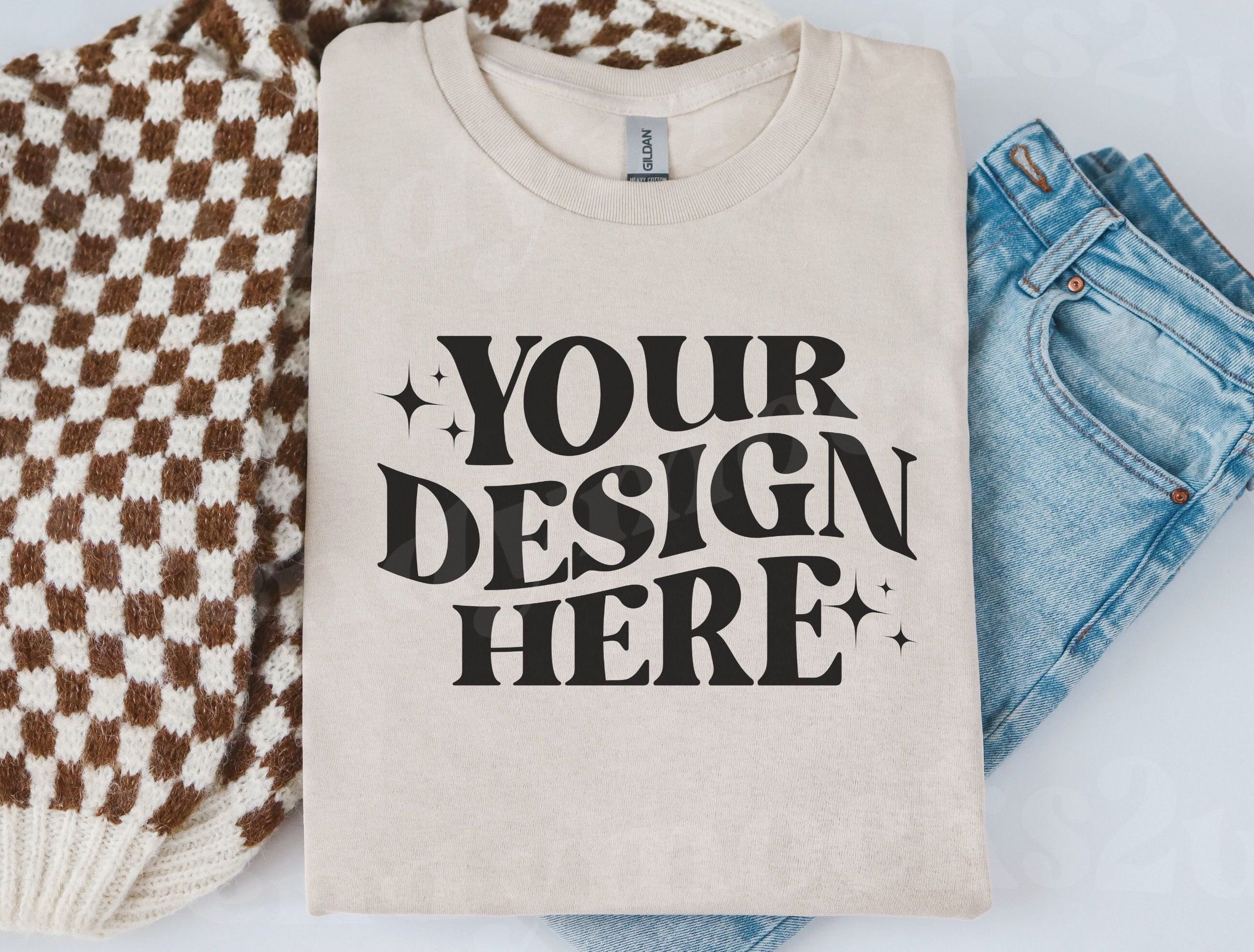 Sand Gildan 5000 Shirt Mockup Gildan Sand Flat Lay Mock Sand Shirt ...