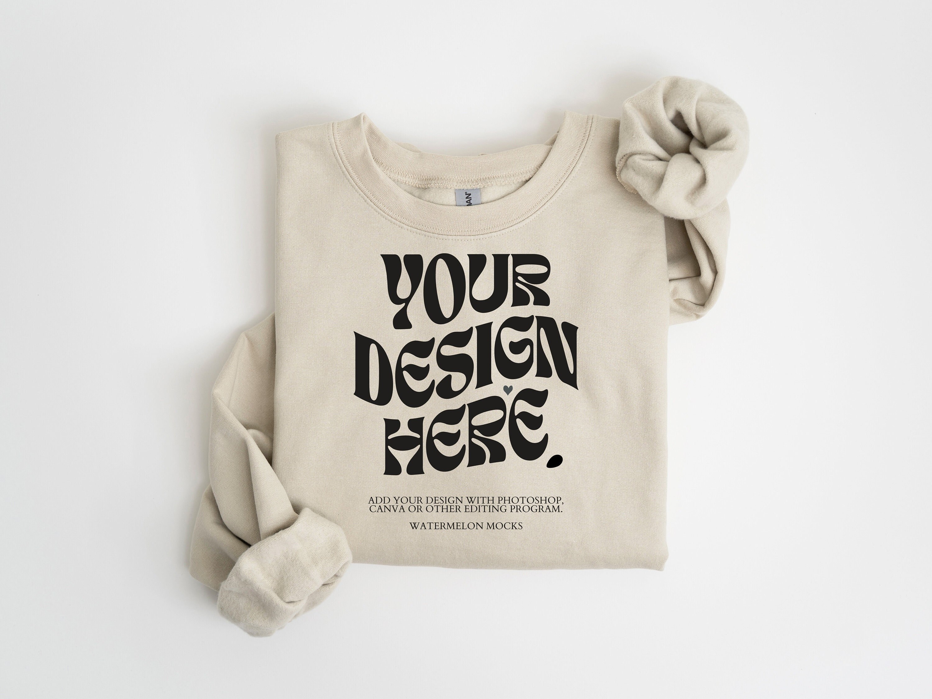 This mockup is featuring: * Gildan 18000 Sand Sweatshirt * Size XL PLEASE READ THE DESCRIPTION BEFOR...