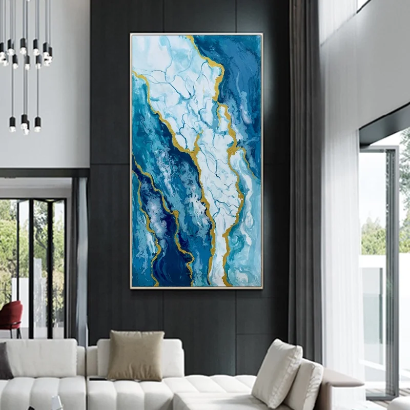 Silk Painting Handpainted Extra Large Bule Watercolor Wall Decor Mo...