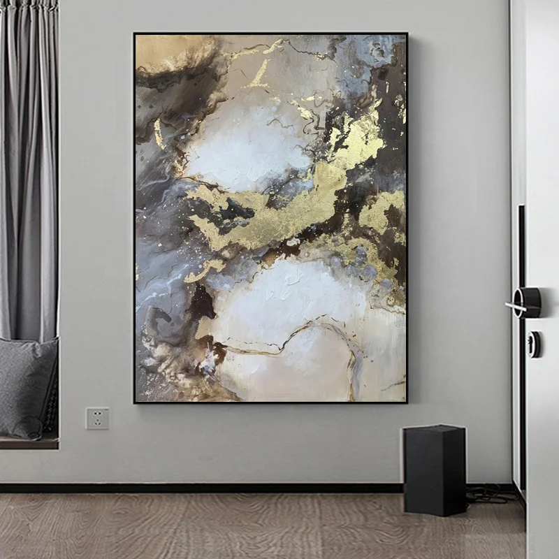Silk Painting Decor Gold Modern Handmade Painting Canvas Colour Art...