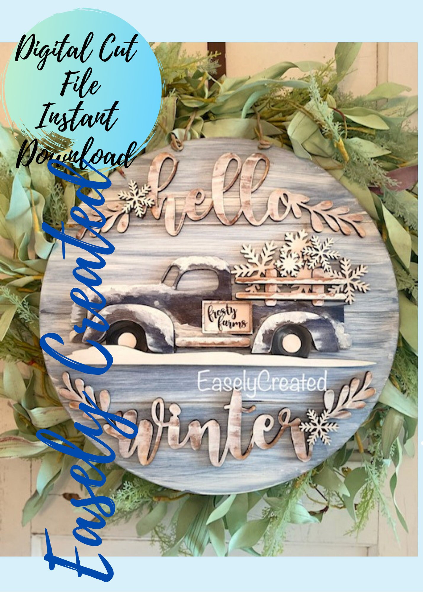 Winter Hanger Sign SVG File Fall SVG hanger sign-Snowflake Truck Si...