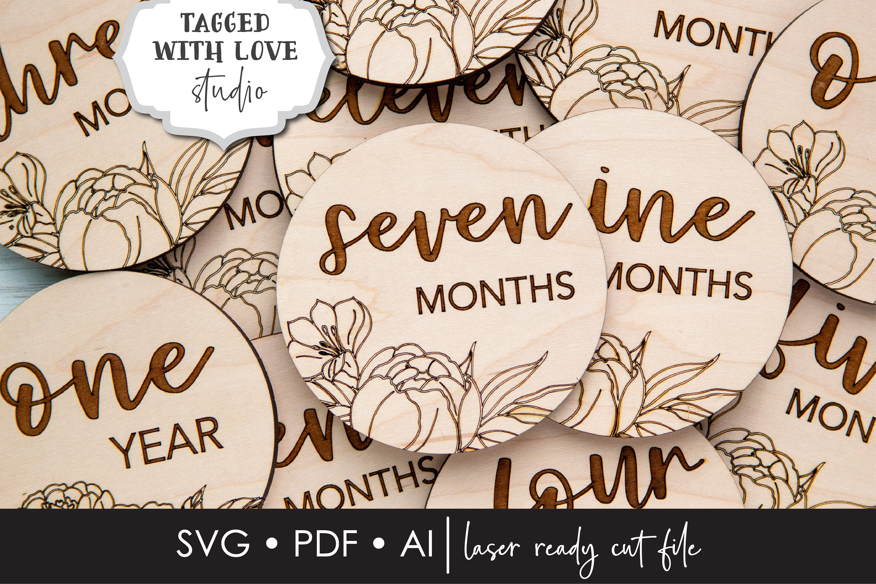 "DIGITAL FILE - Laser File - Monthly Milestone Markers - Baby Monthly Markers - Peony Milestone...