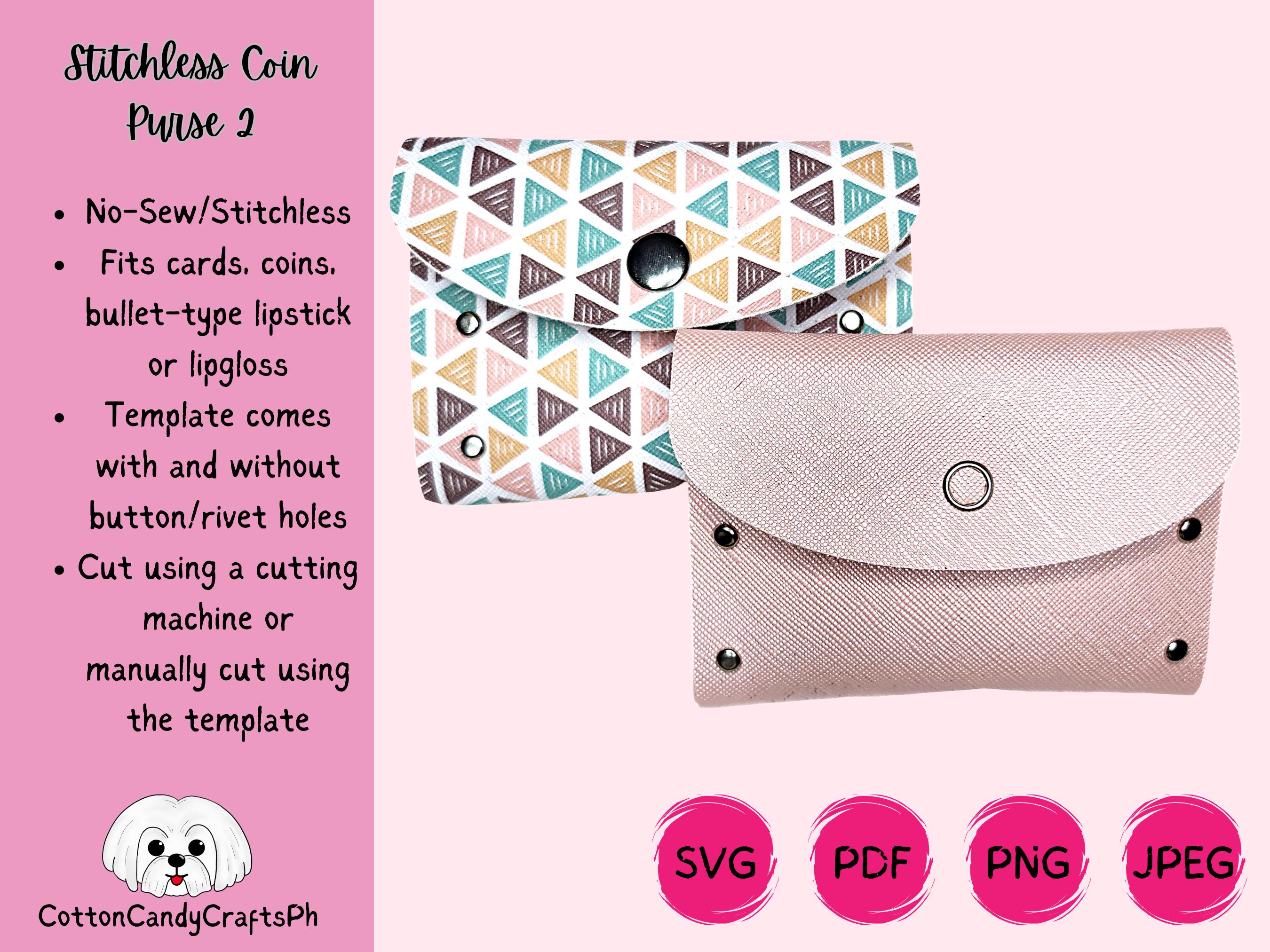 No-Sew Coin Purse | Stitchless Coin Purse SVG Template | No-Sew Card Wallet Template | Faux Leather ...