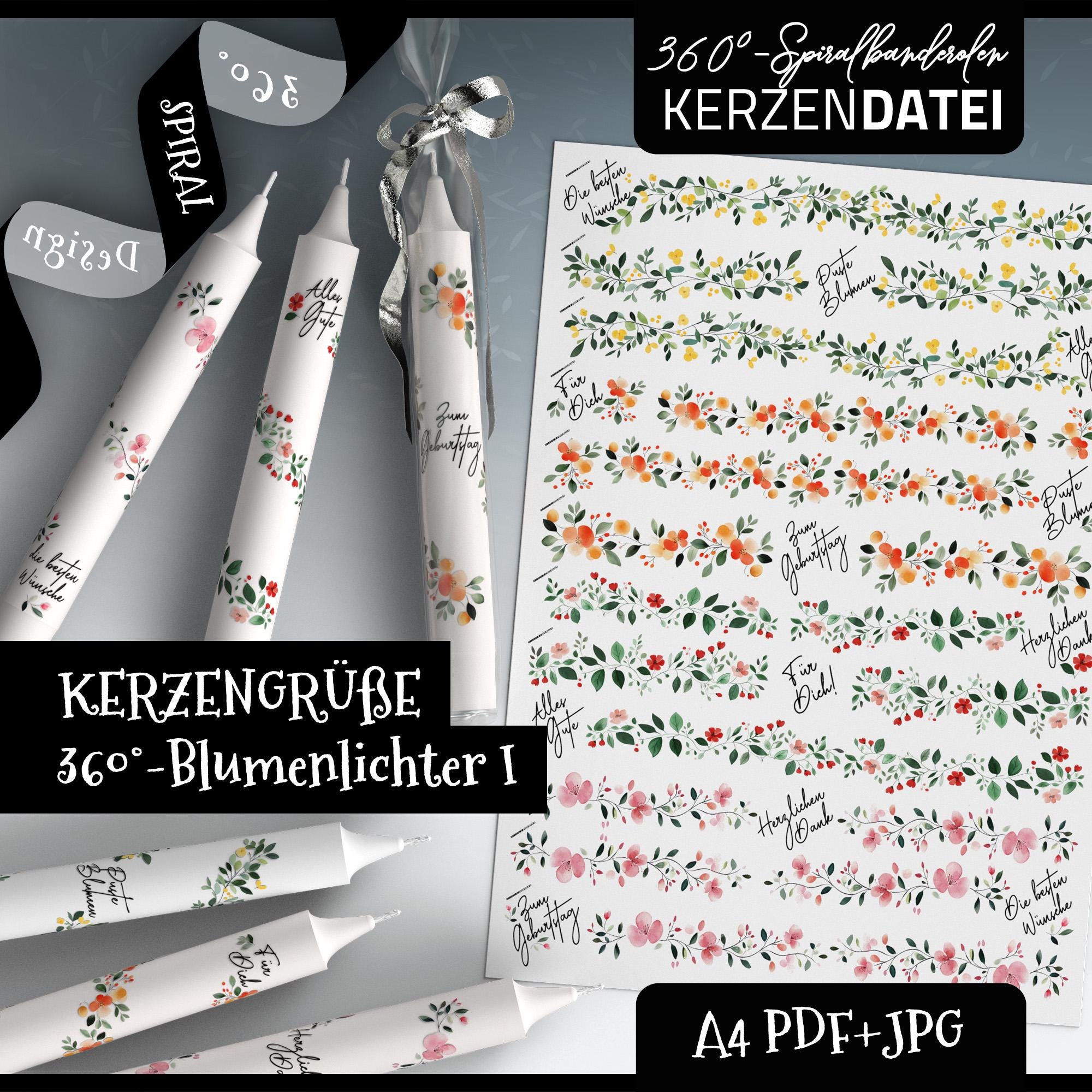 360 degree candle file FLOWER LIGHTS candle greetings, spiral bande...