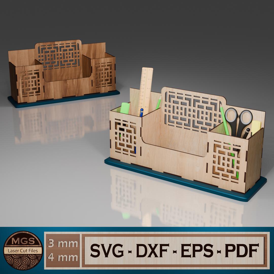 Laser Cut Desktop Organizer SVG File: Stationery Rack (3mm) (Digita...