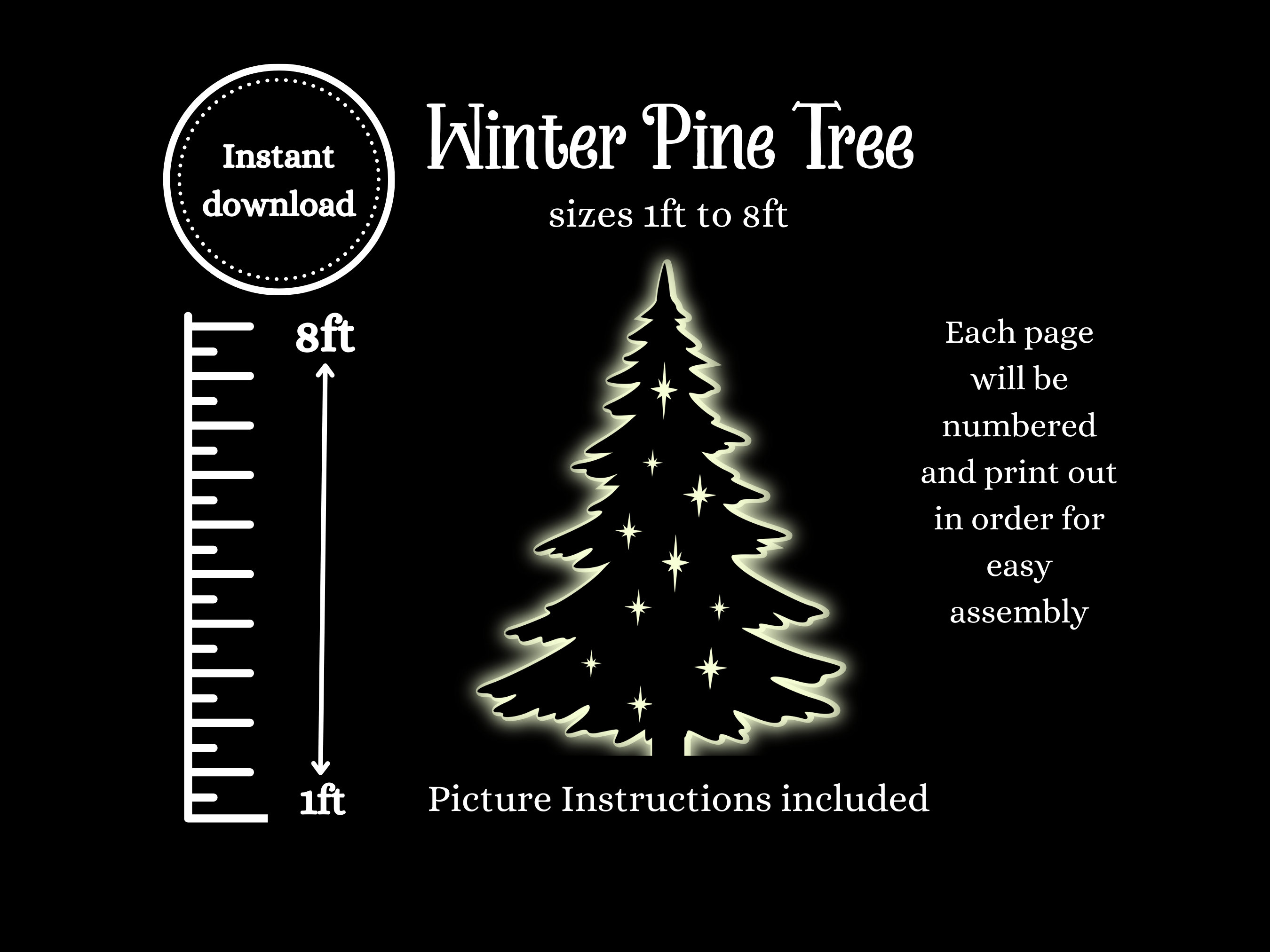 1ft to 8ft tree with stars cut out silhouette templates bundle, woo...