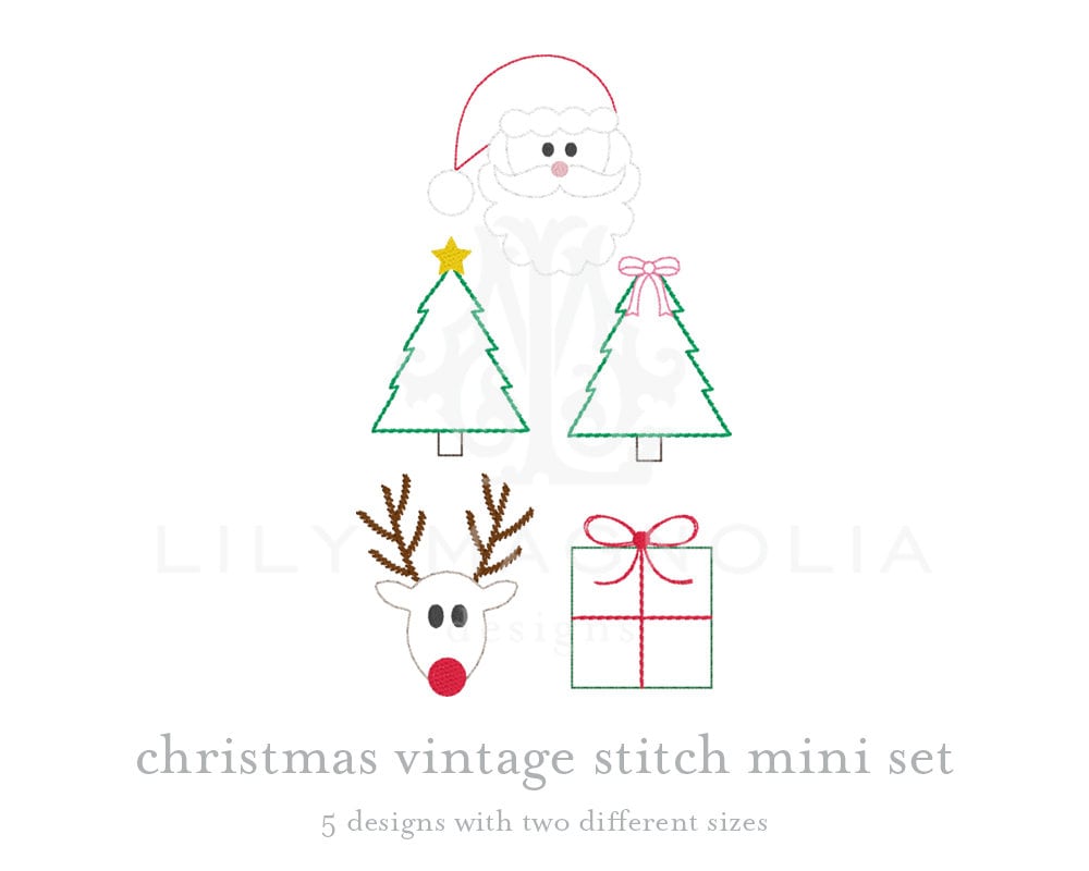 Christmas vintage stitch mini set embroidery design, mini christmas...