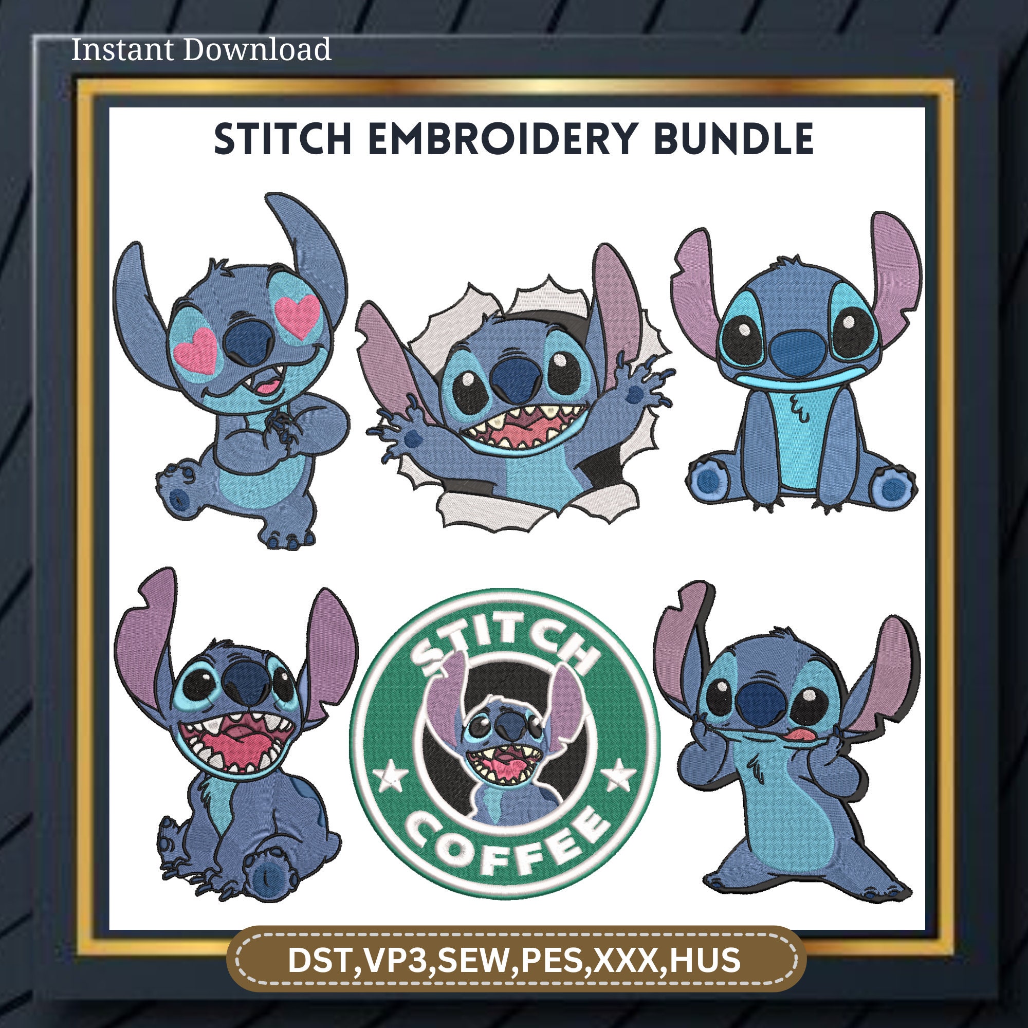 "Stitch Embroidery Design, Stitch Lilo Embroidery, Stitch with Coffee Embroidery, Stitch with H...