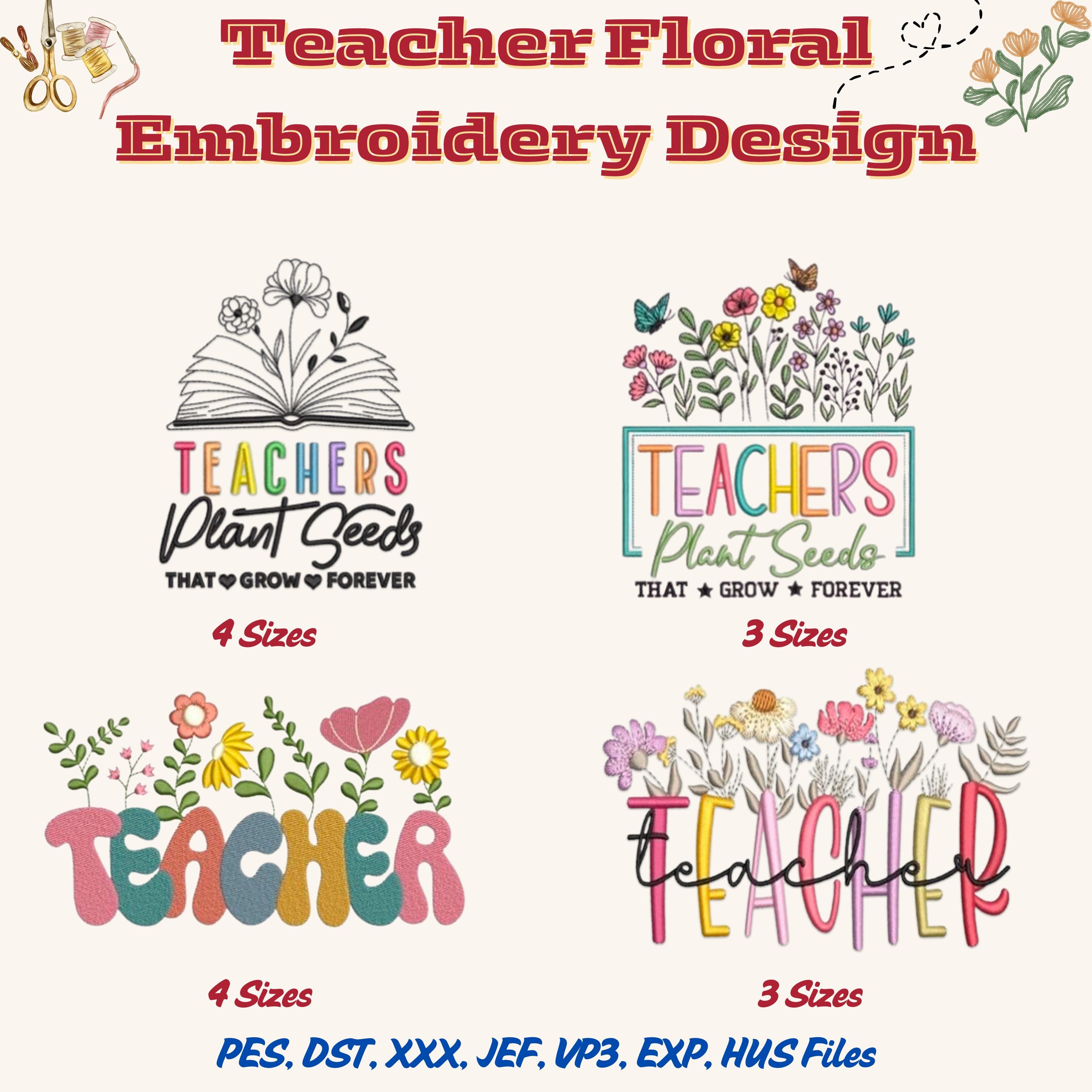 Teacher Floral Embroidery Design, Teacher Embroidery Design, Embroi...