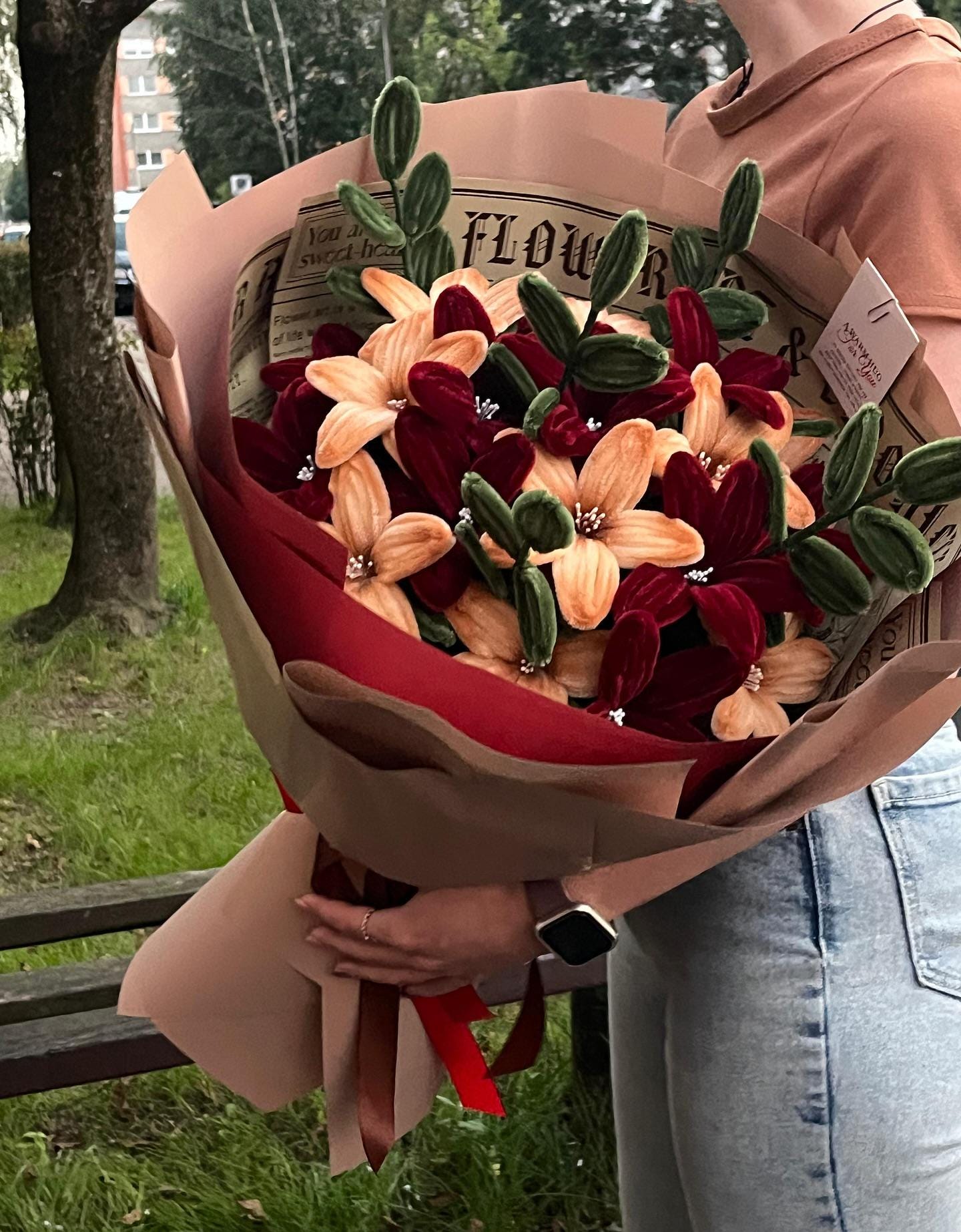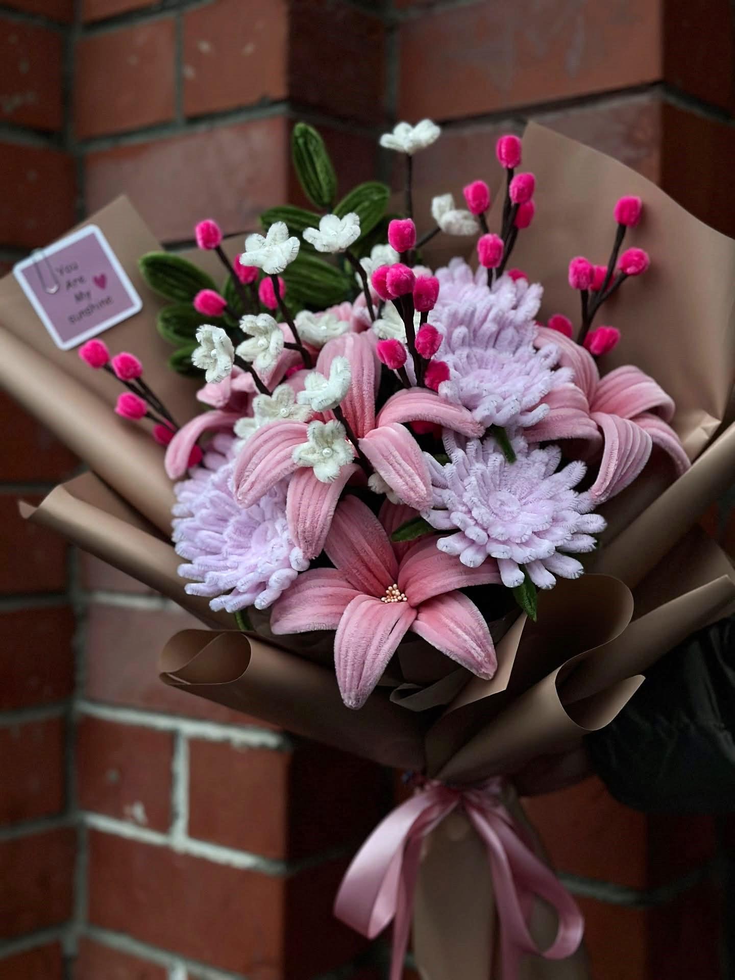 Handmade Chenille Lily Bouquet - Elegant Soft Pipe Cleaner Flowers,...
