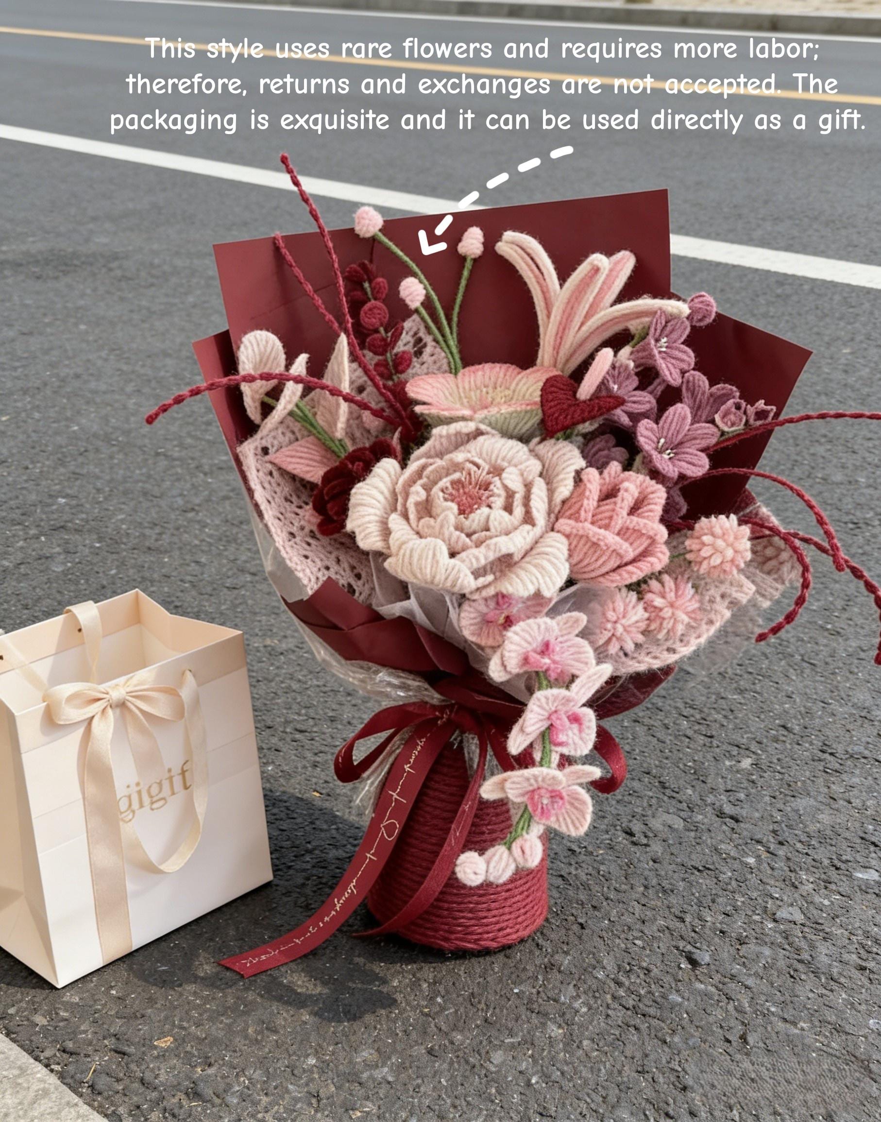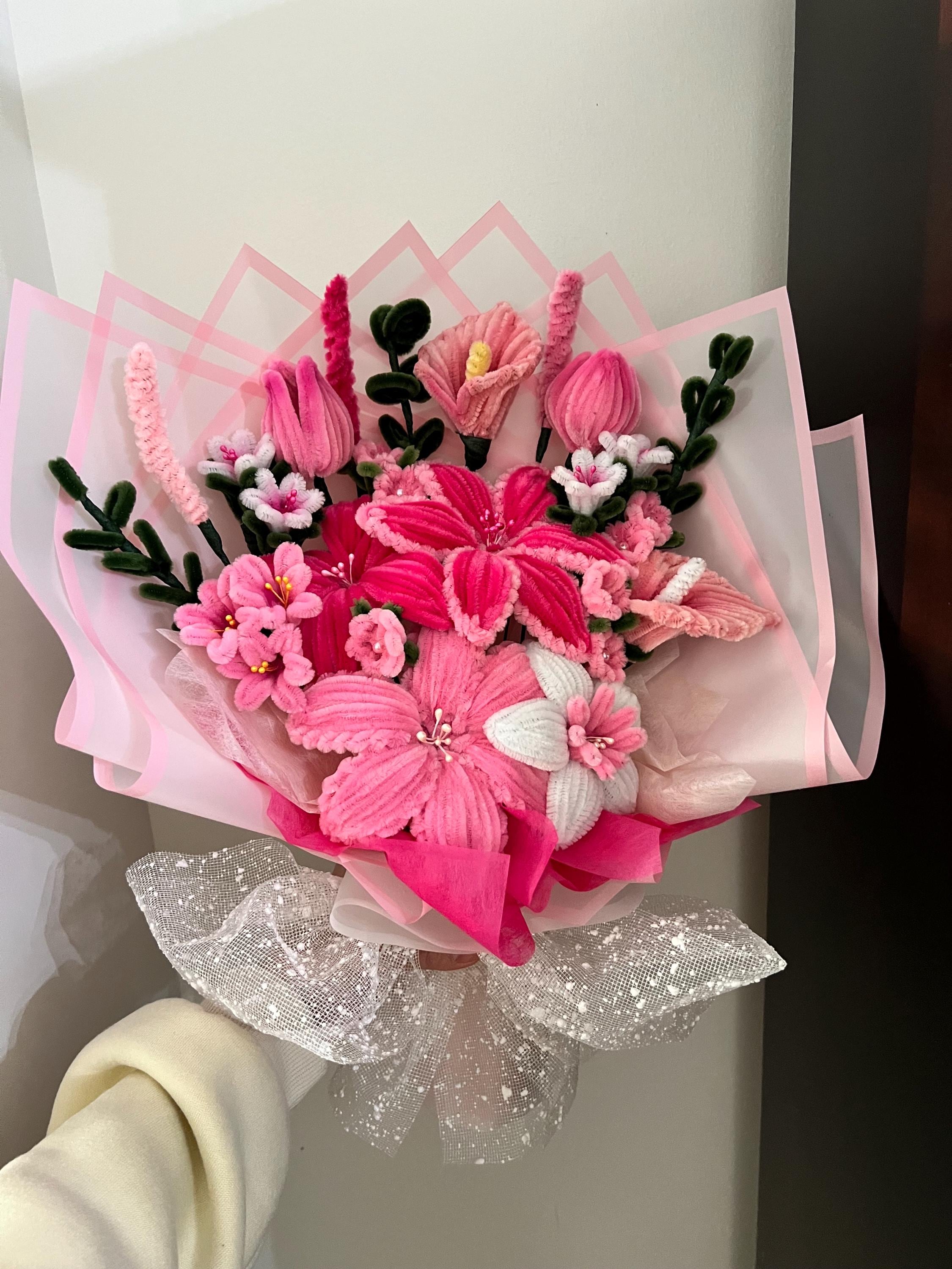 Pink Artificial Flower Bouquet, Handmade Pipe Cleaner Flowers, Roma...