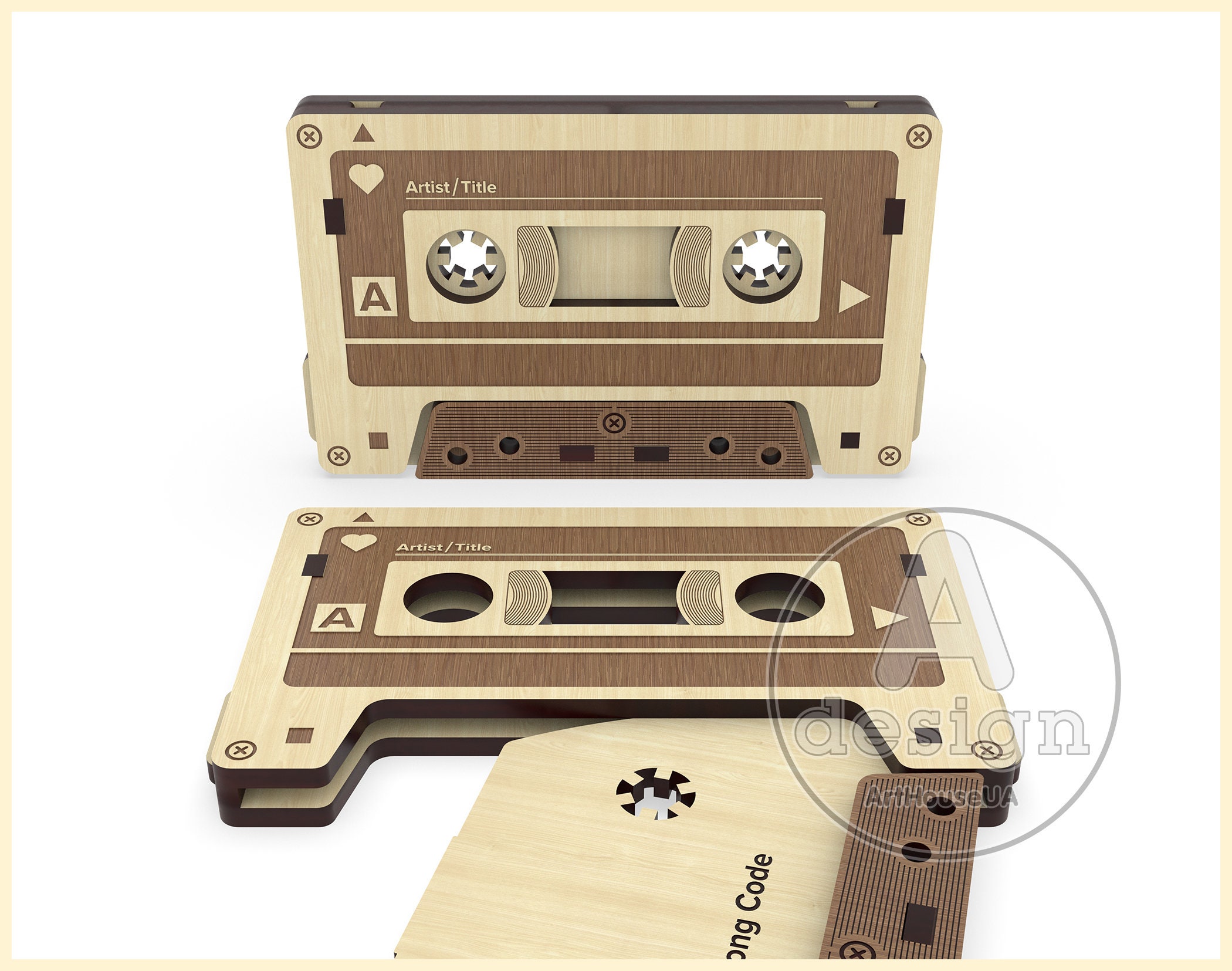 Modern wooden cassette for favorite song code, Vintage cassette tap...