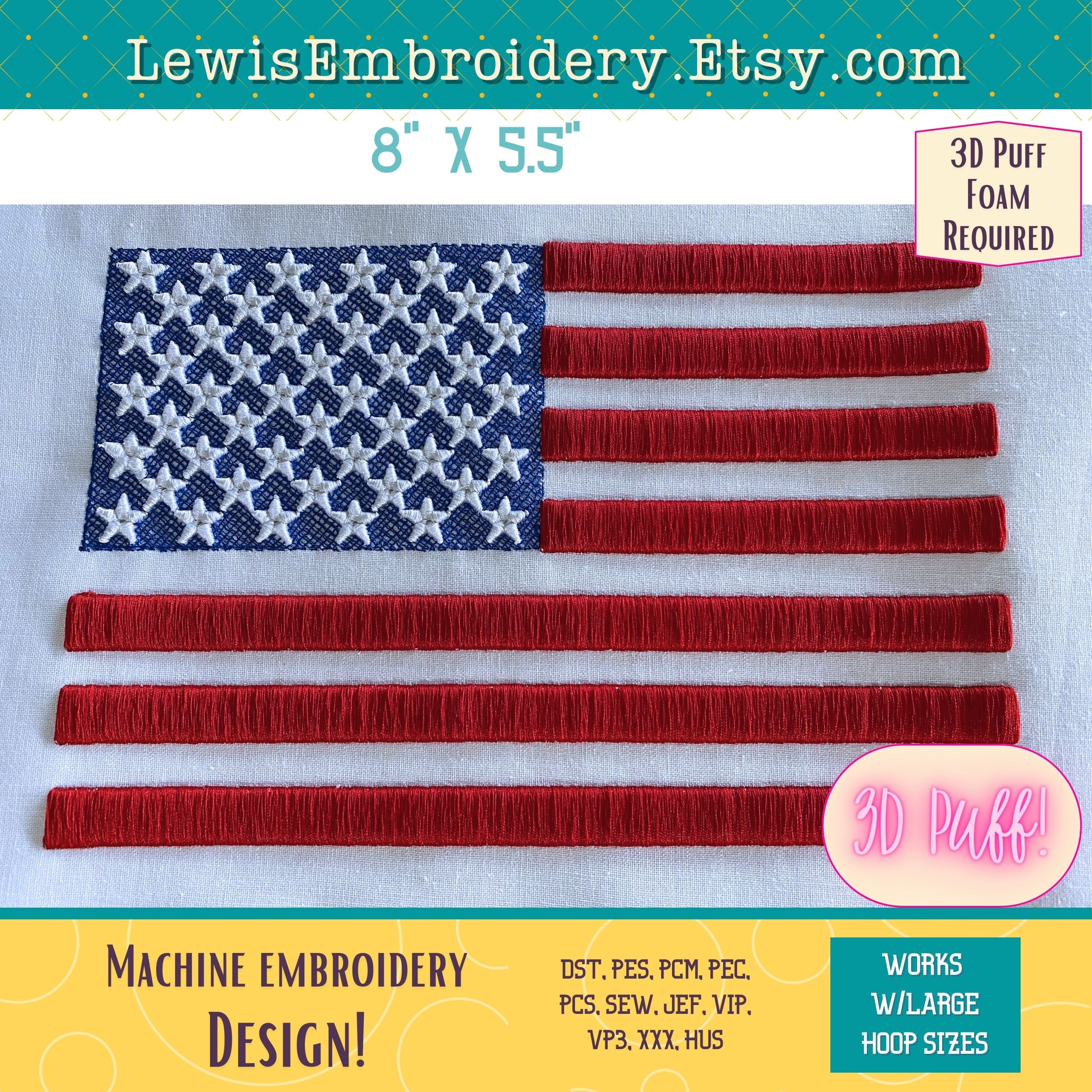 USA Flag 3D Puff Embroidery Design - United States Flag Embroidery ...