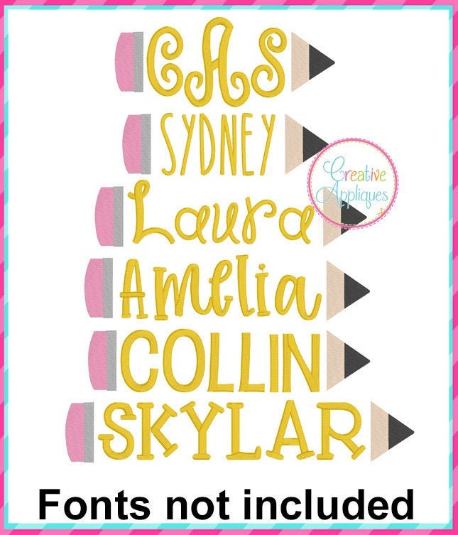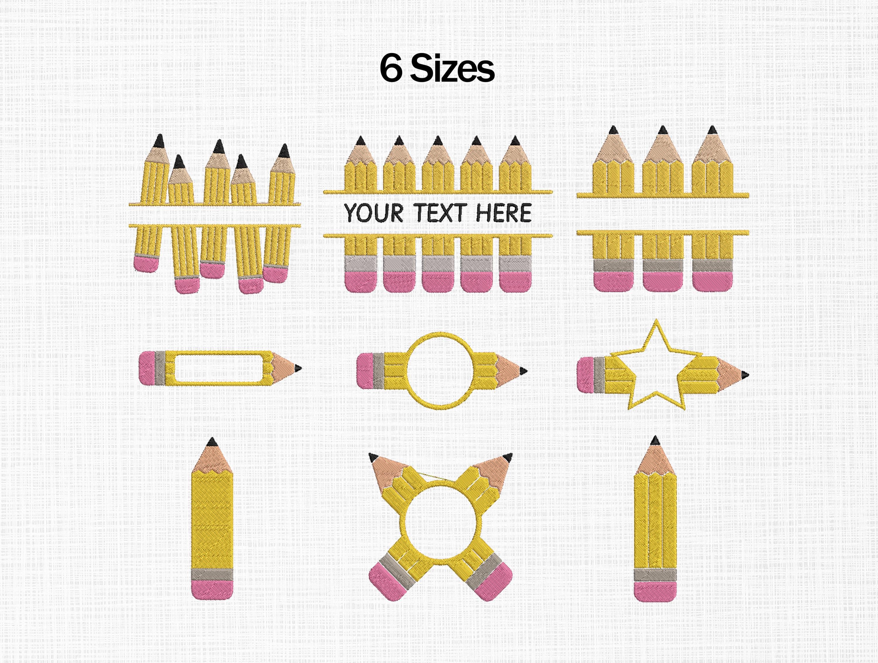 Pencils Embroidery Design, Pencil Split Monogram Embroidery Design,...
