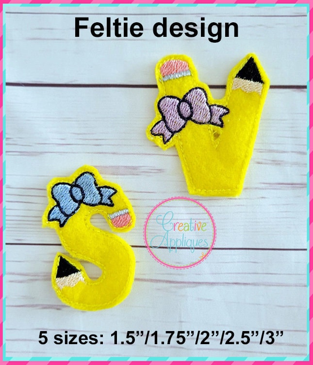 Pencil Bow Alphabet Feltie Design 5 size Digital Machine Embroidery...