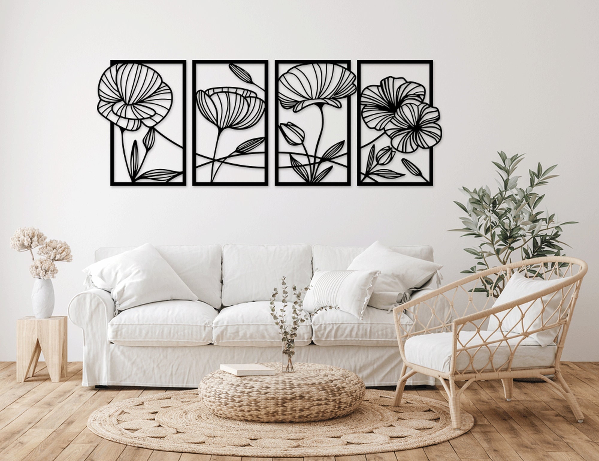 Flowers laser cut svg dxf files wall art sticker engraving decal silhouette template sculpfun cnc cu...