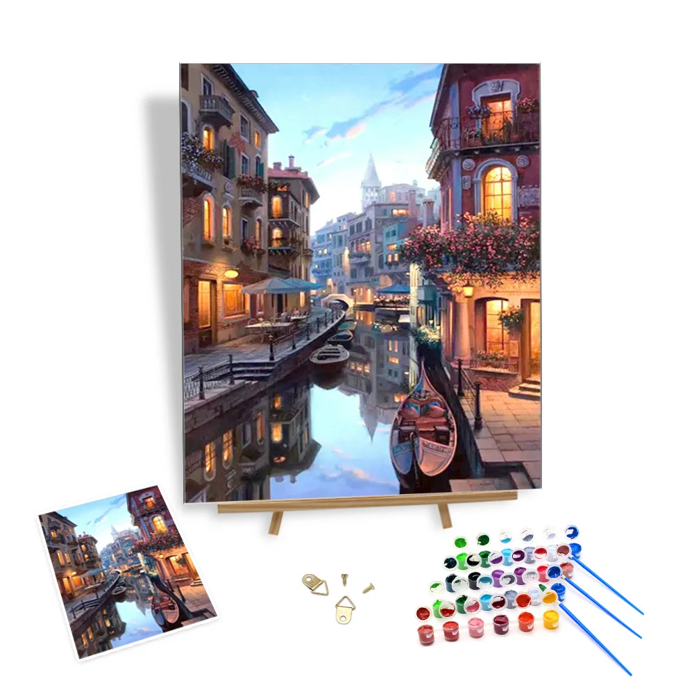 Painting by Numbers on Canvas Hand-painted Venice Water City Night ...