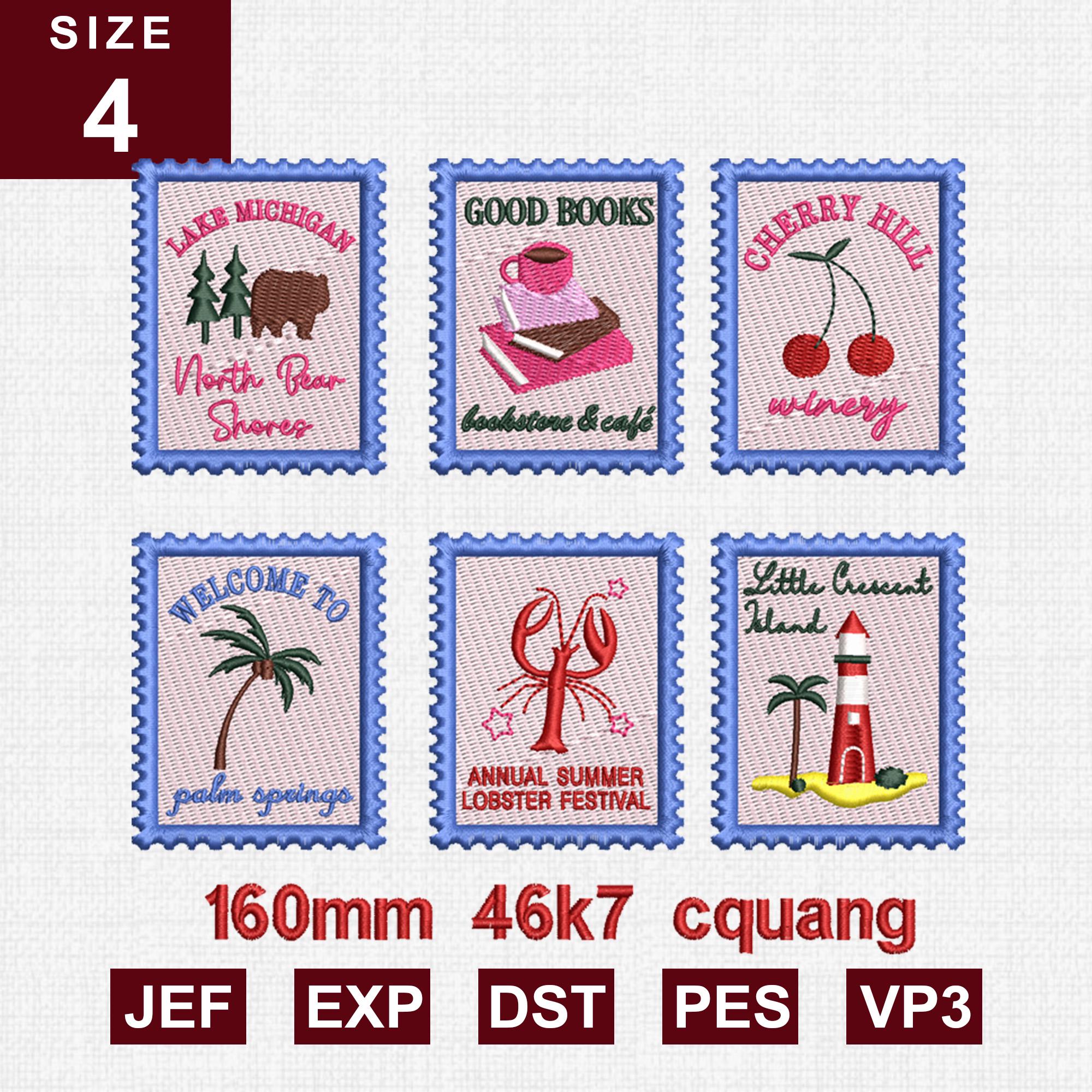 Vintage Travel Stamp Embroidery Designs Set Retro Postage Patch Col...