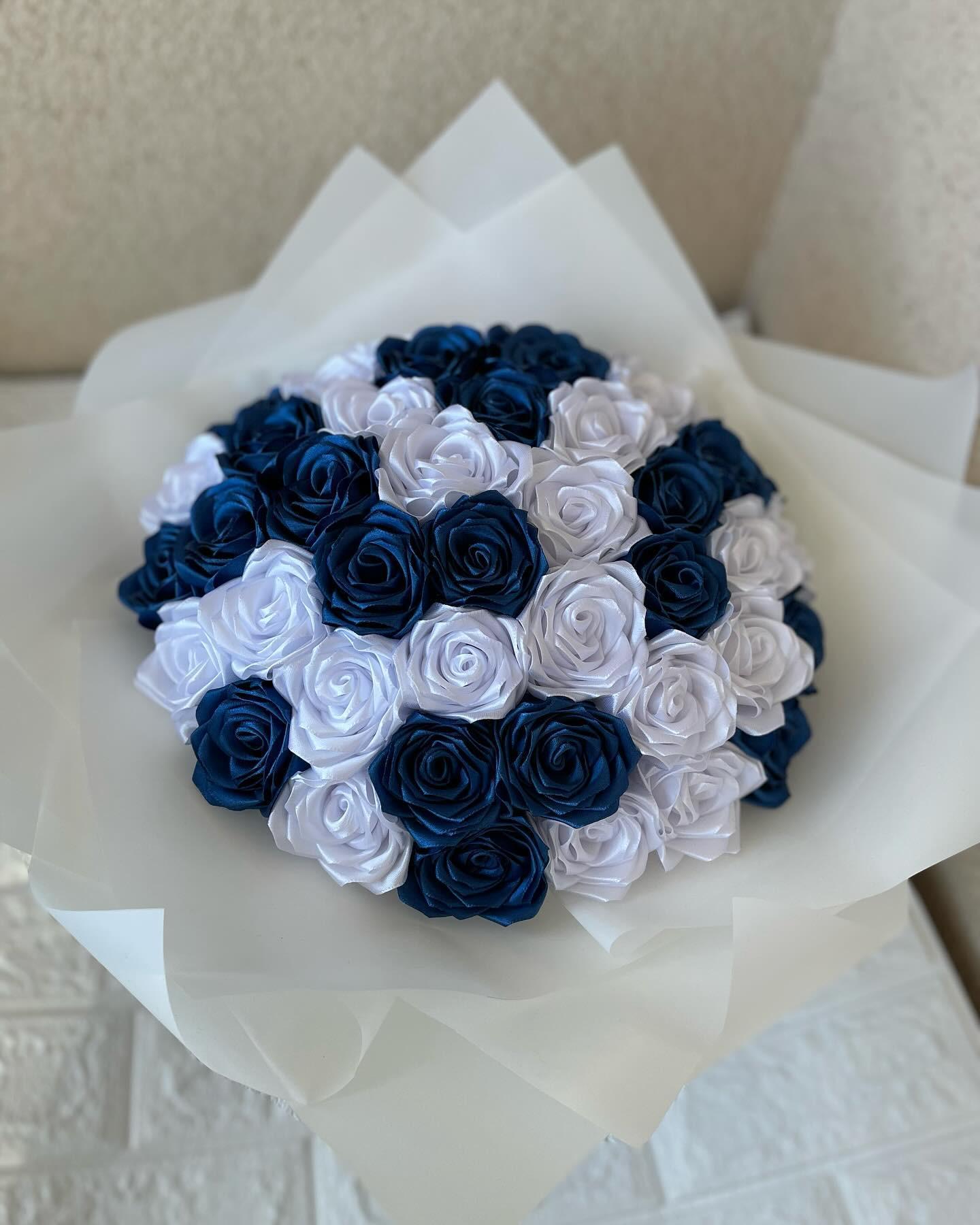 White and Blue Bouquet Eternal Roses, Holiday Gifts Flower Bouquet,...