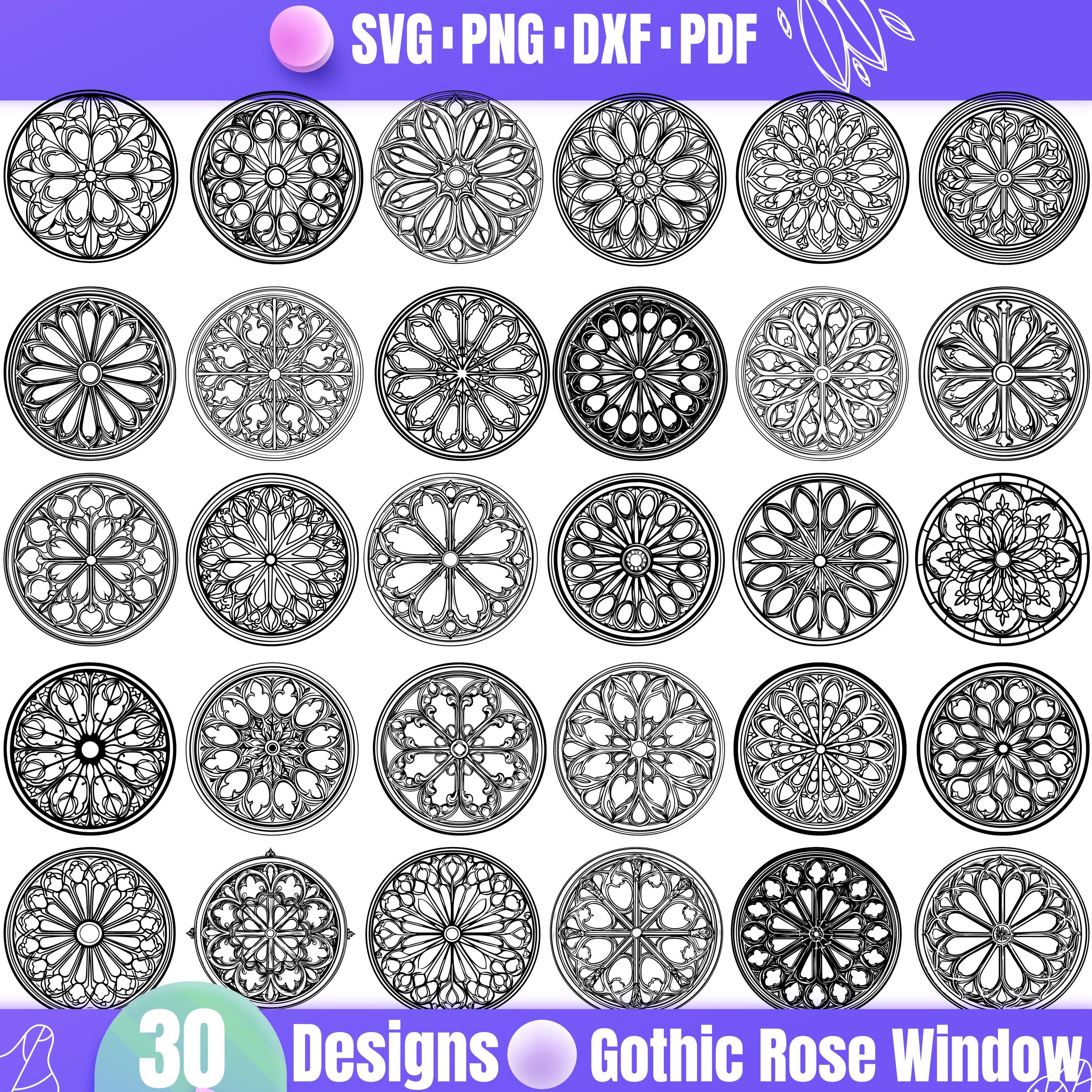 High Quality Gothic Rose Window SVG Bundle, Round Window dxf, Round...
