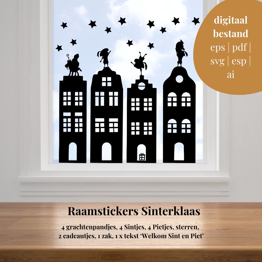 SINTERKLAAS, Pieten, canal houses silhouette to cut your own WINDOW...