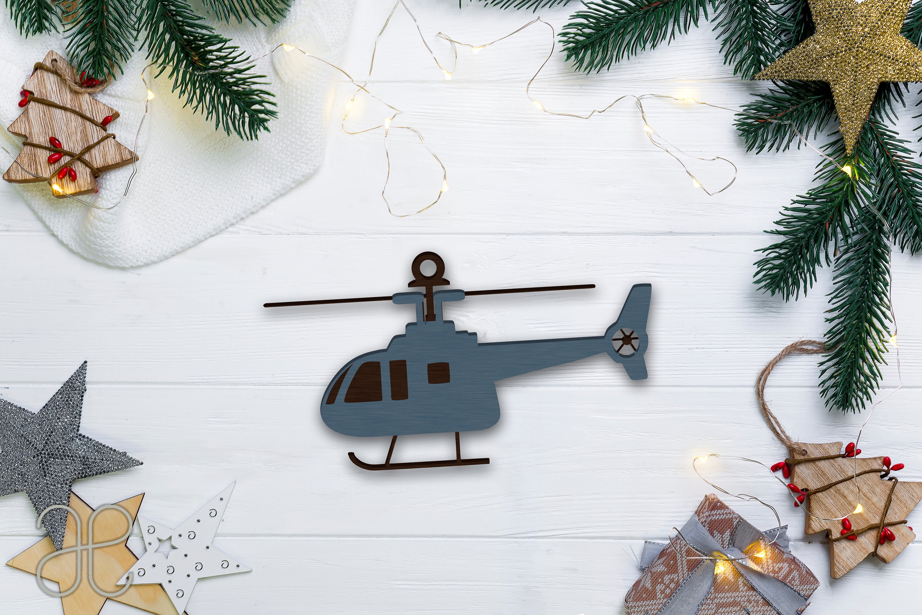 Helicopter Christmas Ornament SVG Laser Cut File, Laser Cut Wood Ch...