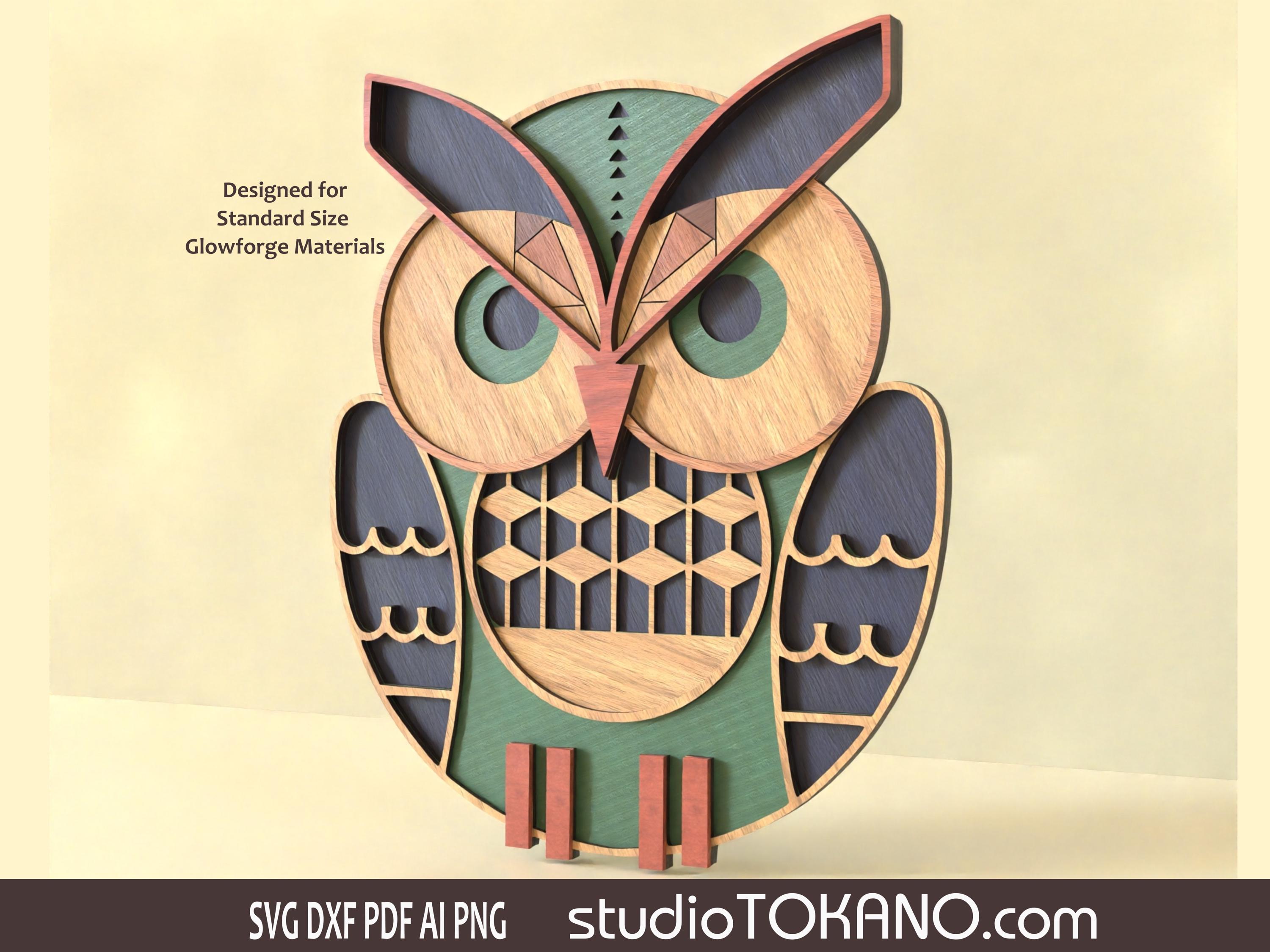3D svg for layered wooden plywood art, Modernist owl for laser cut....