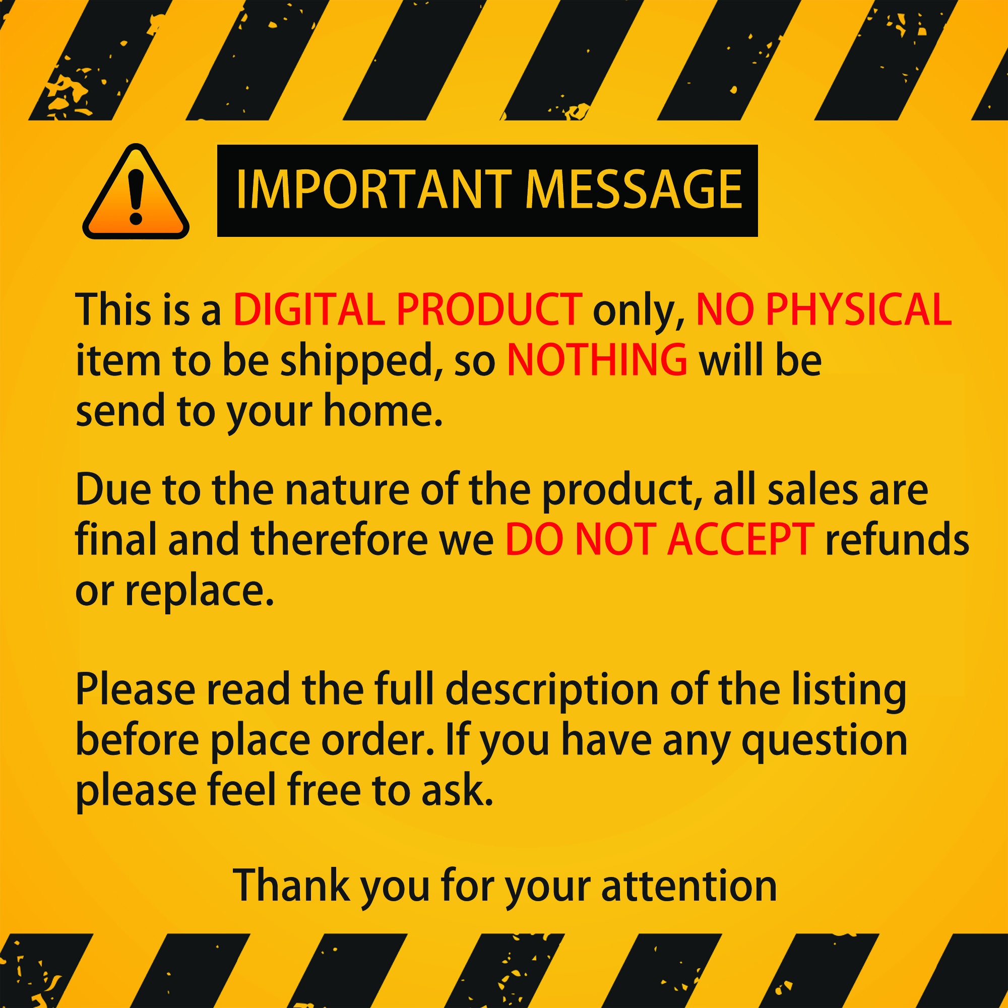 Instant download files Item does not Accept : Returns, Exchange or cancellation. Please contact with...